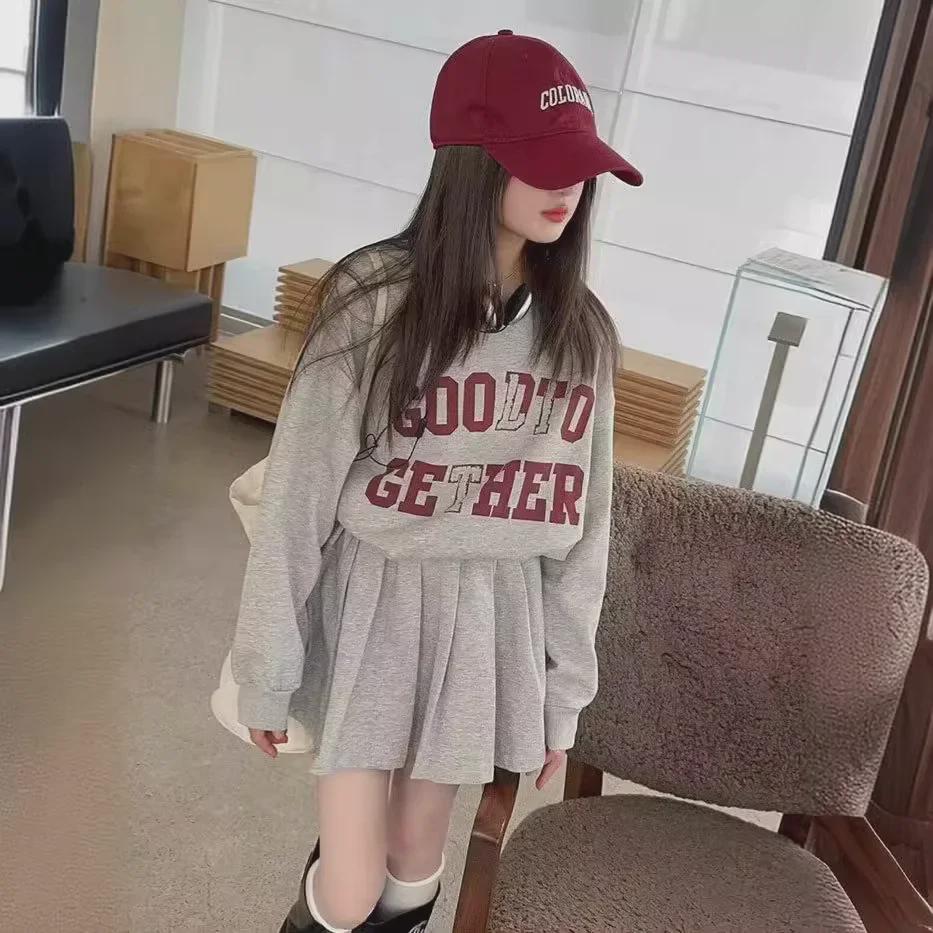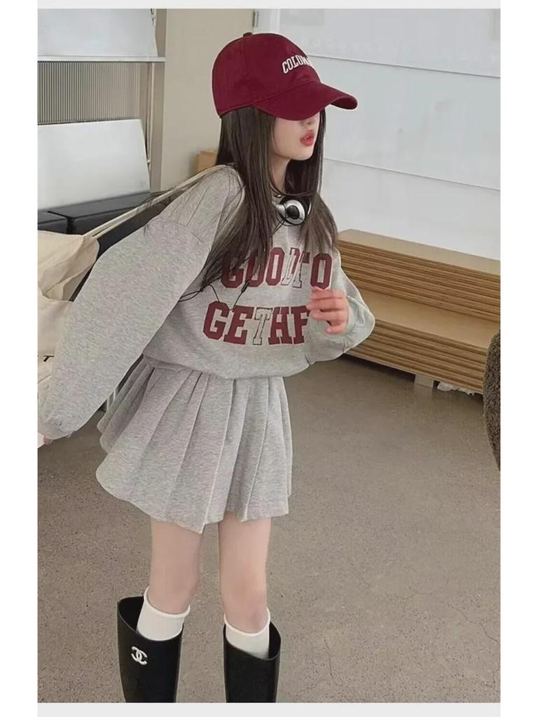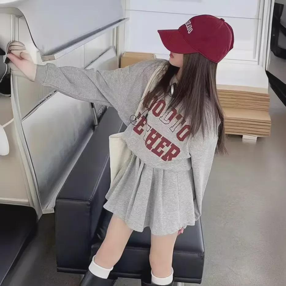 Модный комплект из двух частей для девочек весна 2024: Комплект из свитера и юбки