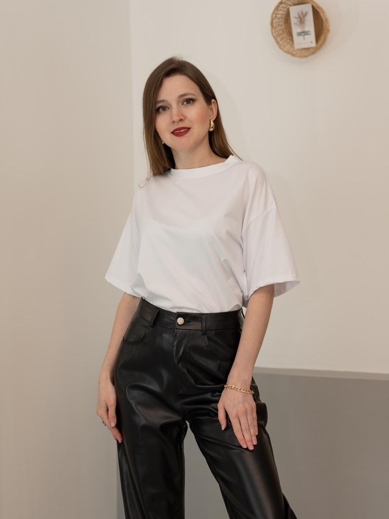 Свободная футболка с открытой спинкой Интересная модель - простого кроя, универсальная, свободная, но с необычным дизайном на спинке. Отлично смотрится и в пляжном, и в офисном образе, прекрасная база! Материал - хлопок, не линяет при стирке и не растягивается. Размер в размер, брать сильно большую и нет смысла, особенно учитывая свободный крой. Хорошее качество, аккуратные швы.
