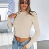 Женская одежда с круглым вырезом, уличная одежда, тонкие дышащие футболки с длинными рукавами, облегающие укороченные топы с подкладкой, сплошной цвет