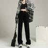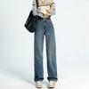 GMXIA Джинсы грушевидной формы, повседневные, с высокой талией, широкие брюки, прямые, кожаные, фирменный дизайн, ретро, брюки до пола, осень