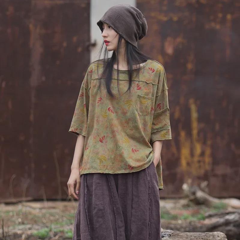 Женская футболка с коротким рукавом из хлопка и льна с пескоструйной обработкой в винтажном стиле