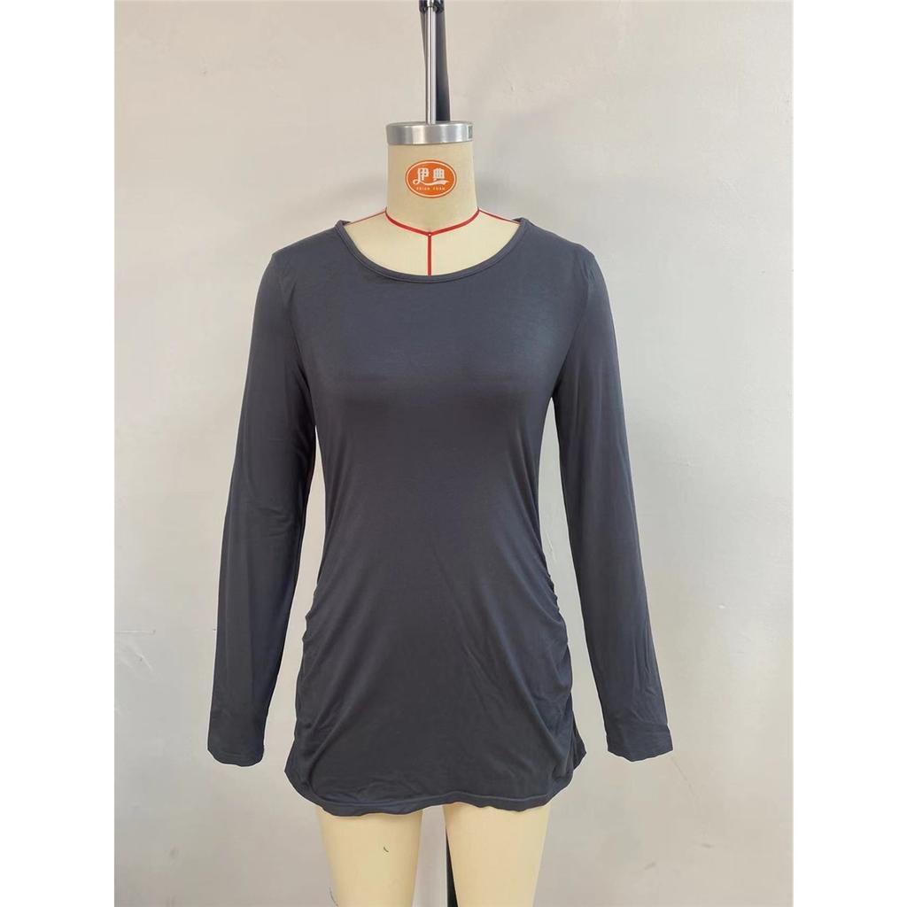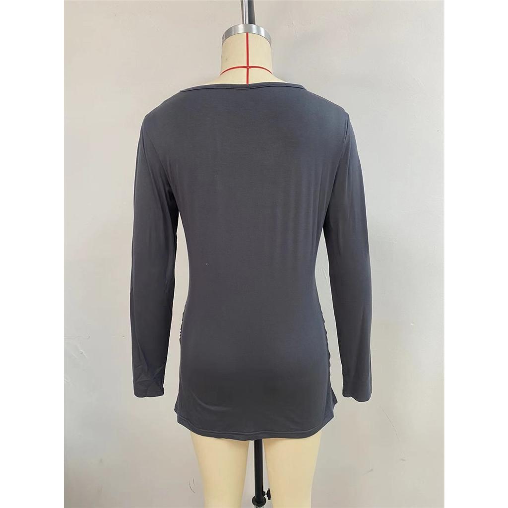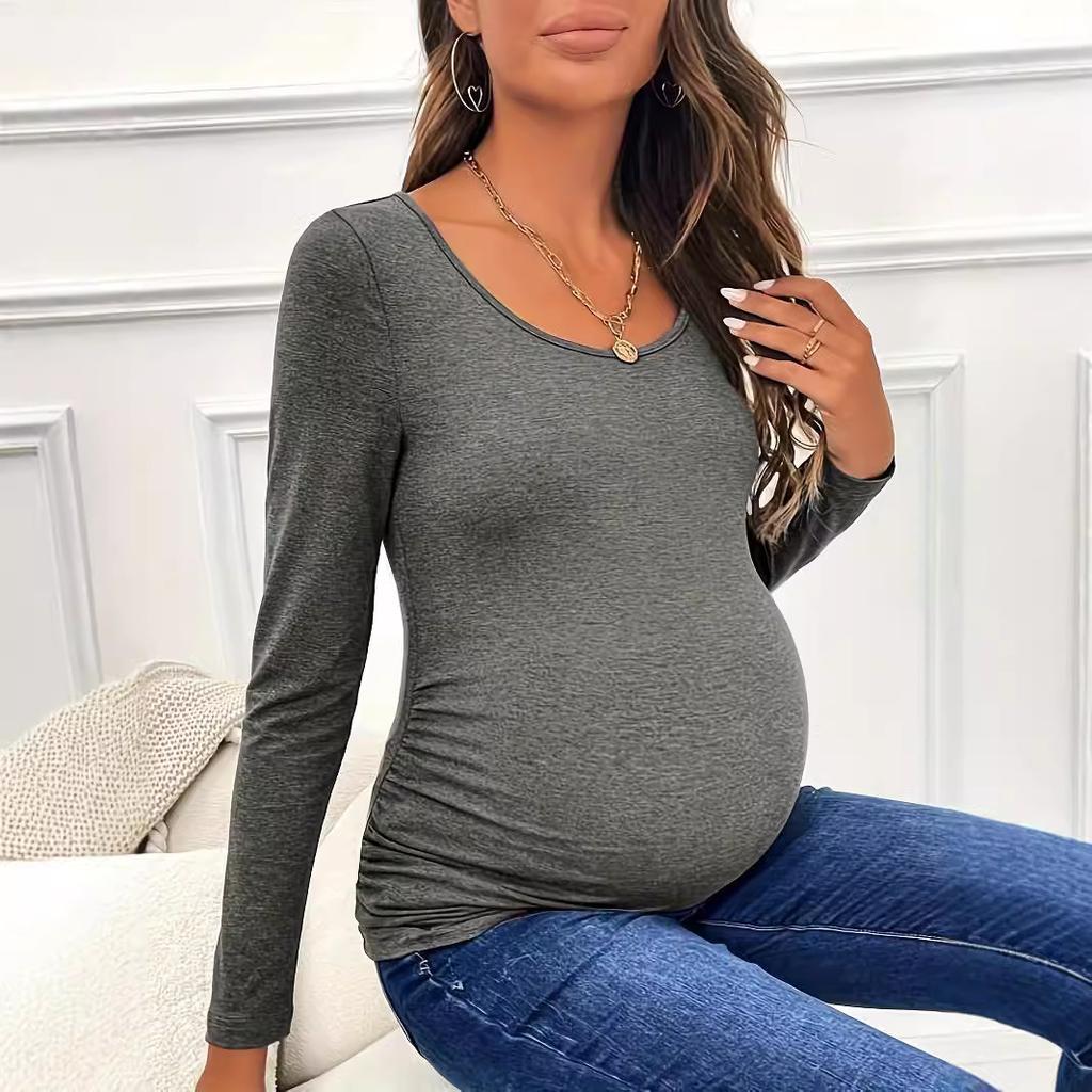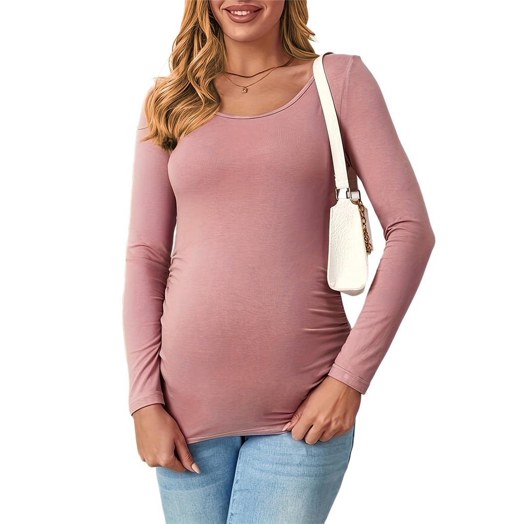 Футболка для беременных с оборками, однотонная футболка с длинным рукавом и U-образным вырезом