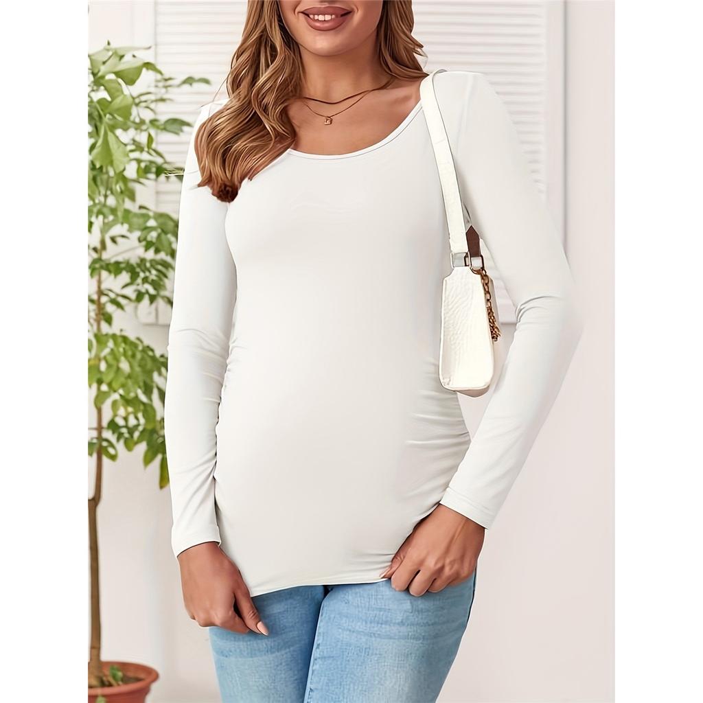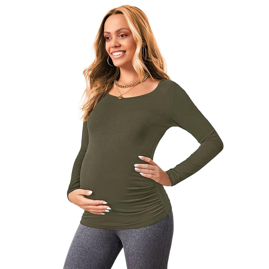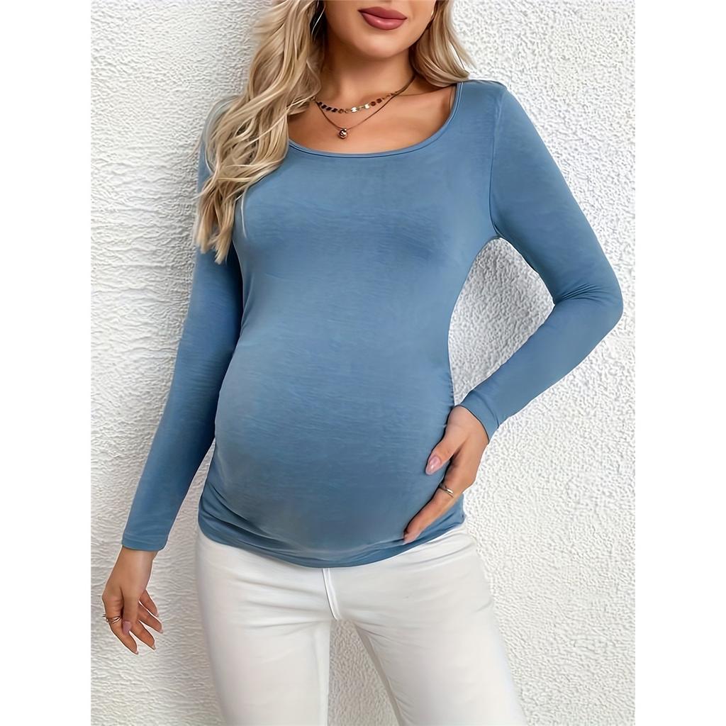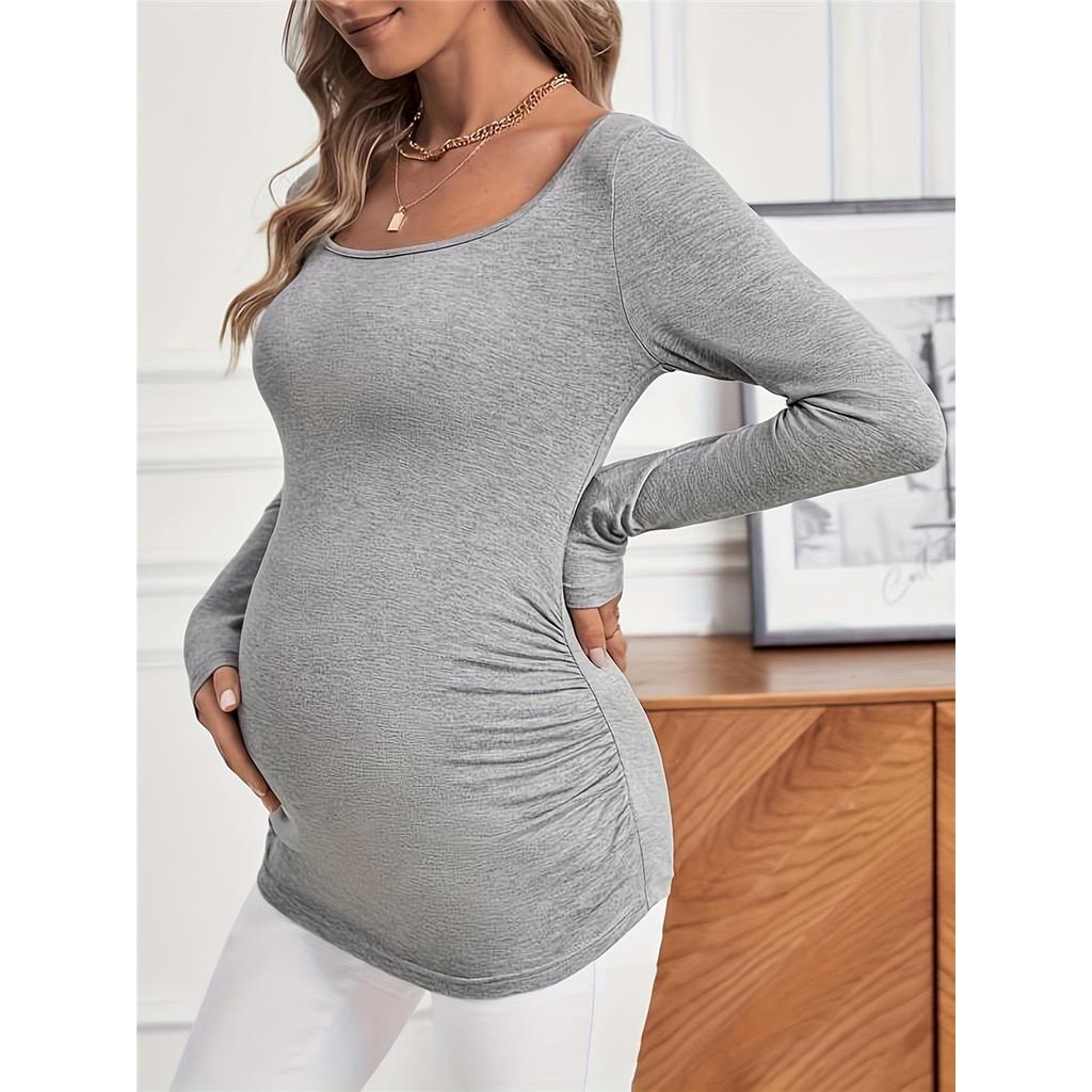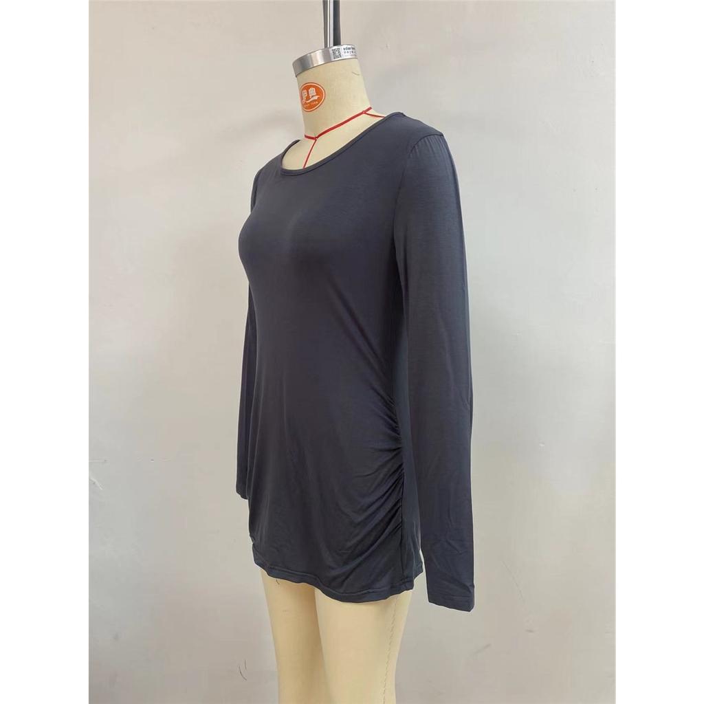 Футболка для беременных с оборками, однотонная футболка с длинным рукавом и U-образным вырезом