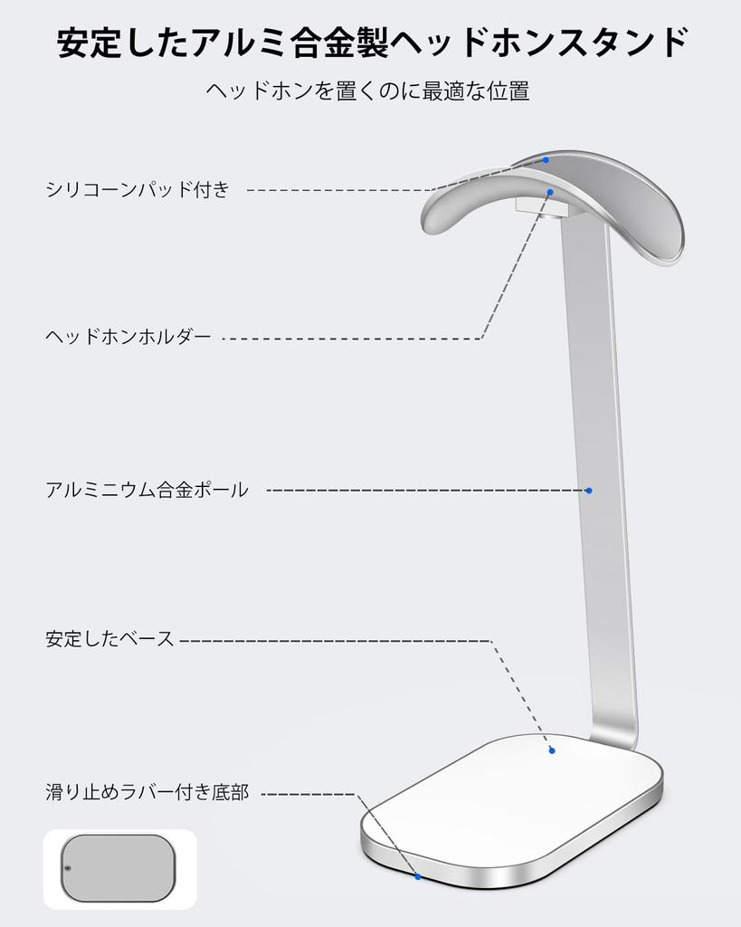 Подставка для наушников VICHYIE для AirPods, опорная планка из алюминиевого сплава и устойчивая подставка для наушников, совместимая с большинством наушников, серебристо-белый цвет
