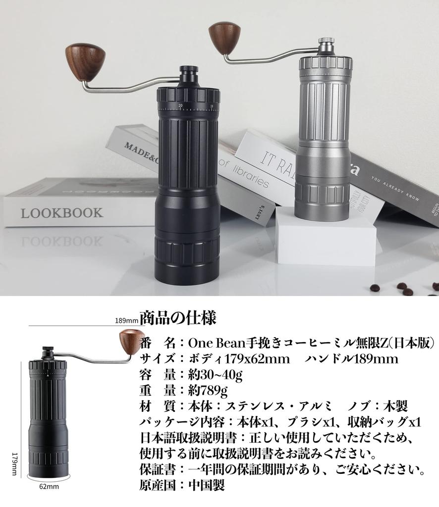 One Bean Ручная кофемолка Mugen Z ручного типа, большая стандартная, из нержавеющей стали, ступка, полностью металлическая, с функцией внешней регулировки степени помола, простая в