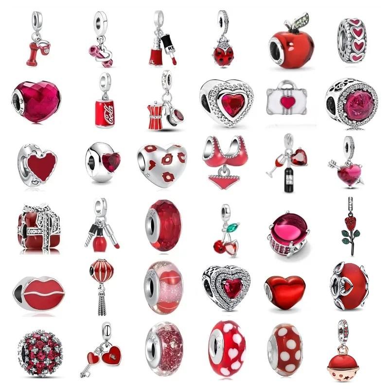 925 стерлингового серебра DIY ювелирные изделия помада высокие каблуки любовь сердце гантель яблоко шарм браслет из бисера