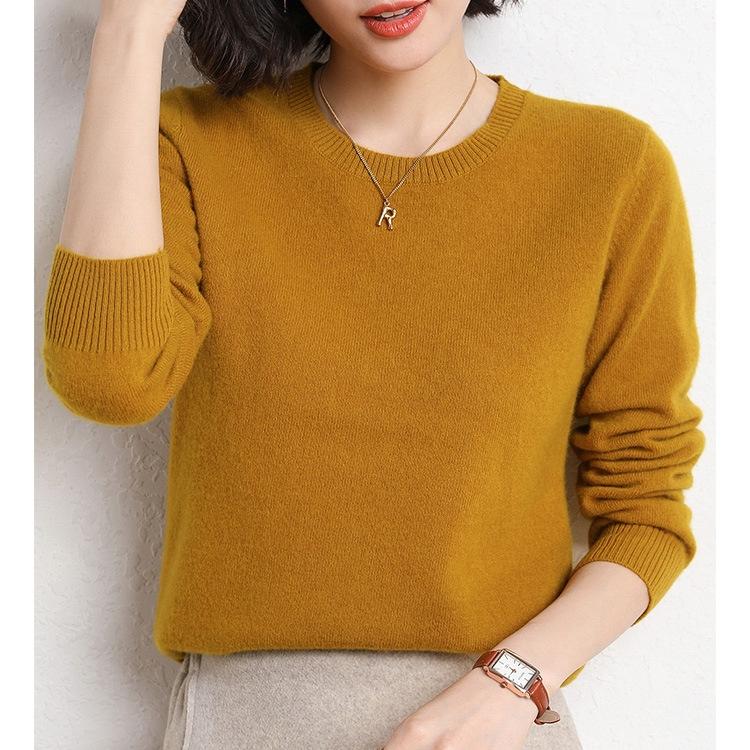 GMXIA Весенне-осенний свитер с круглым вырезом, трикотаж для женщин, длинные рукава, свободный темперамент, утягивающий низ, верх