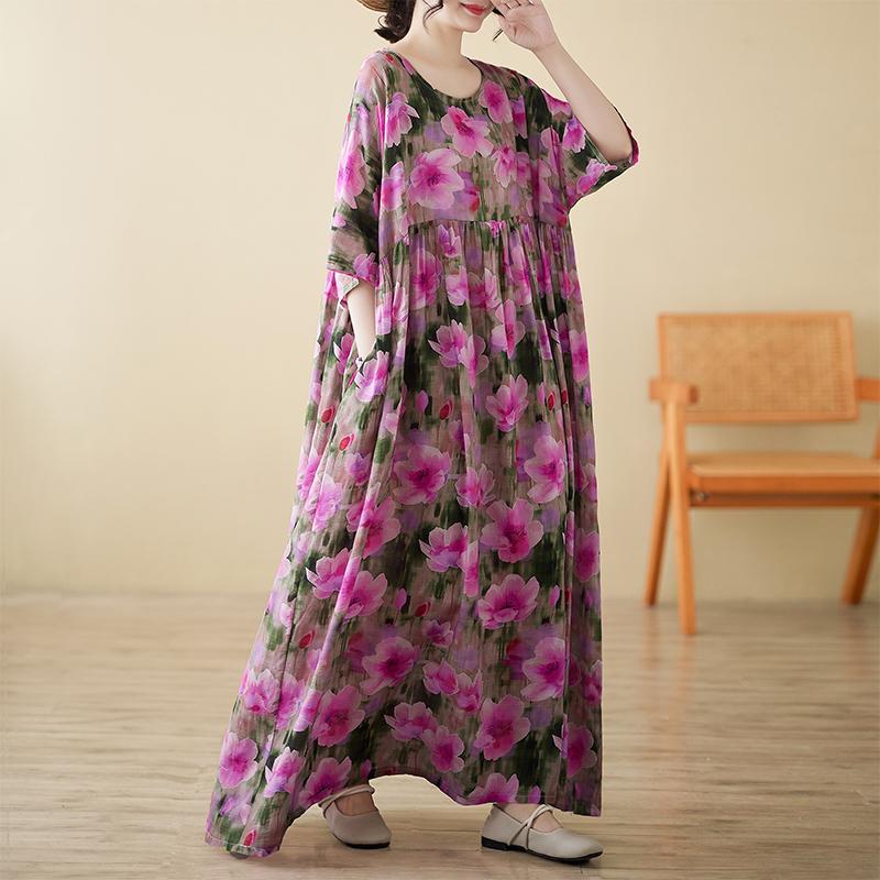 Dimanaf 2025 Женское Летнее Новое Винтажное Цветочное Платье Плюс Размер Праздничное Длинное Базовое Повседневное Свободное Платье С Коротким Рукавом — купить товар онлайн с бесплатной доставкой по всему миру!
