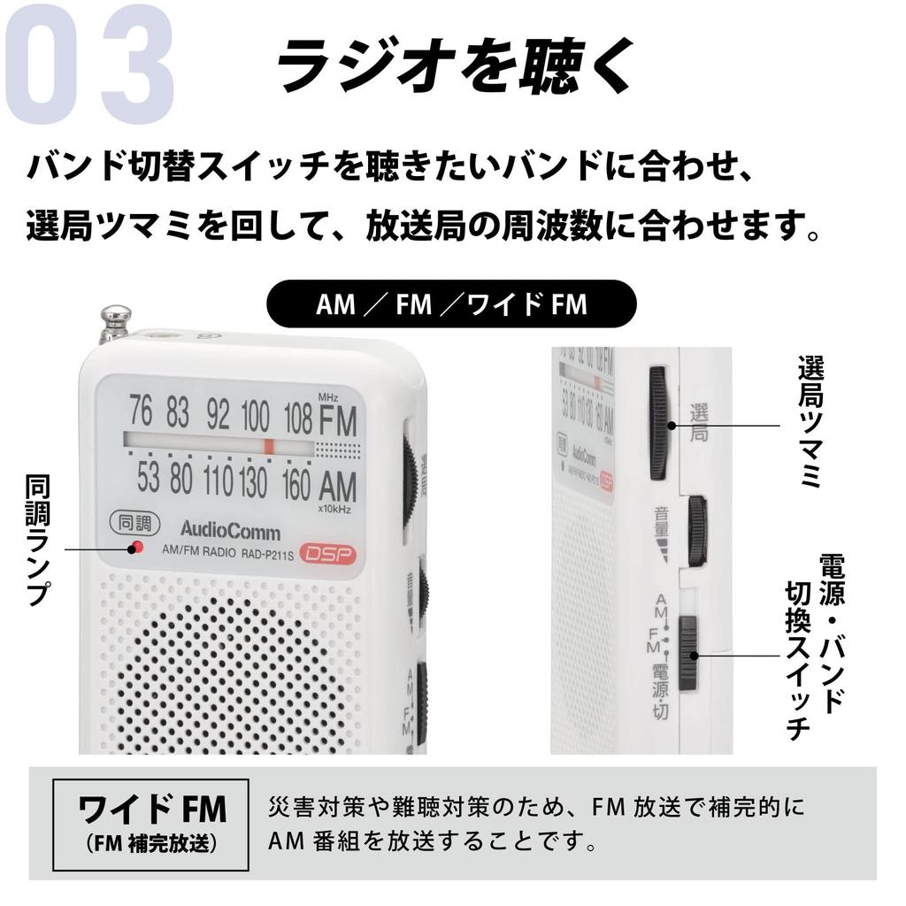 Карманное радио Ohm Denki AudioComm, белое (OHM) AM/FM RAD-P211S-W 03-0974