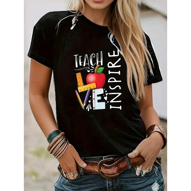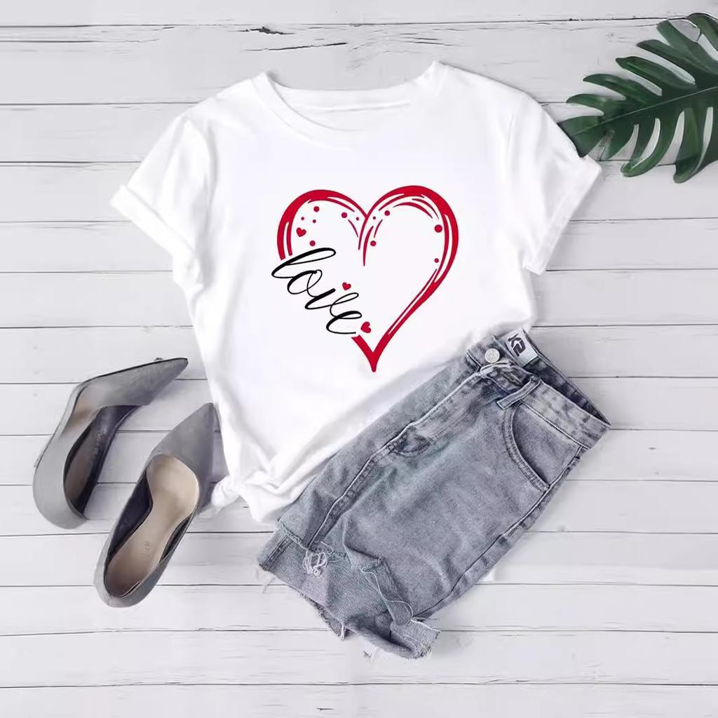 Летний топ с круглым вырезом и принтом, модные повседневные милые женские футболки из чистого хлопка с короткими рукавами