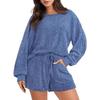 YYFS Женская мода повседневная весна осень однотонный принт длинный рукав О-образный вырез брюки брюки костюмы