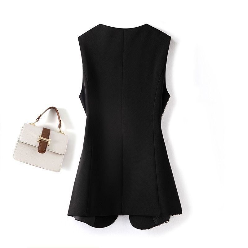 Элегантный женский длинный жилет без рукавов с воротником контрастного цвета, приталенный жилет, модная верхняя одежда на осень и весну