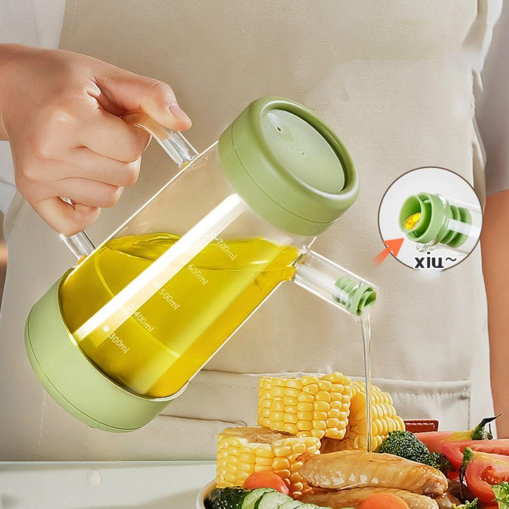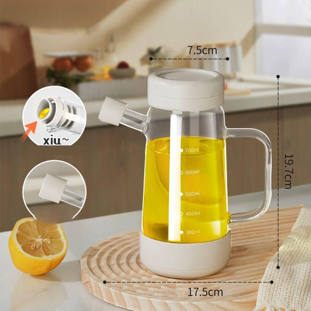 1. **Большая емкость 700 мл**: Эта стеклянная масленка имеет объем 700 мл, что позволяет хранить значительное количество масла, сокращая необходимость в частом его заполнении и делая ее идеальной как для домашней готовки, так и для профессиональной кухни.