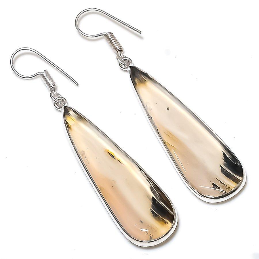 Монтанский агат Ручная работа 925 стерлинговое серебро Подарочные украшения Серьга 2,36" Q8a68