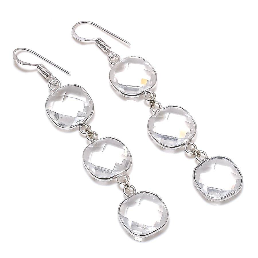 Белый Топаз Ручной Работы Ювелирное Изделие из Стерлингового Серебра 925 Серьга 2,76" N4z15
