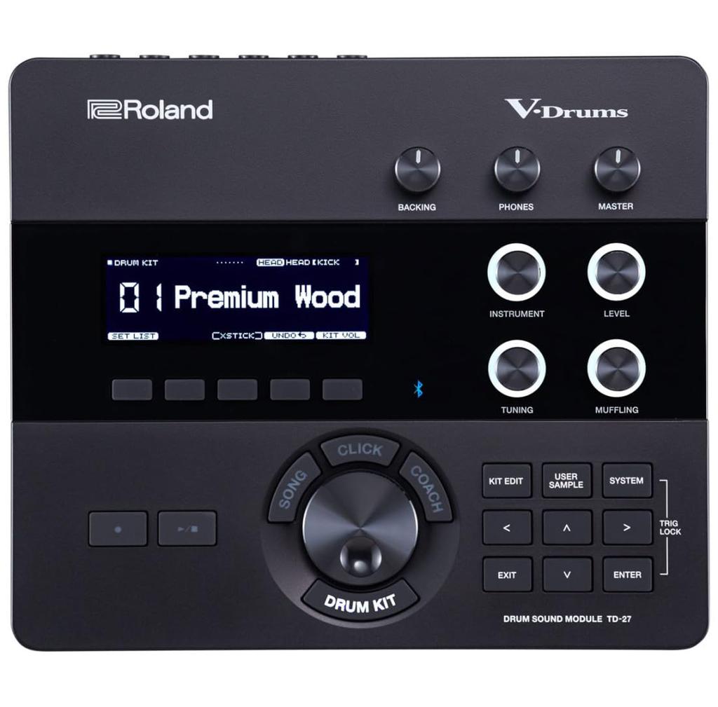 TD-27, источник звука для VAD506 и VAD503, оснащен 55 новыми пресетами, ориентированными на акустические комплекты.. Также включен широкий спектр электронных звуков классических инструментов Roland, необходимых для современных стилей.. TD-27 — это звуковой модуль, позволяющий создавать всевозможные выражения, например, импортировать собственные сэмплы и накладывать их на встроенные барабаны для создания звуков, которые больше никто не сможет воспроизвести.