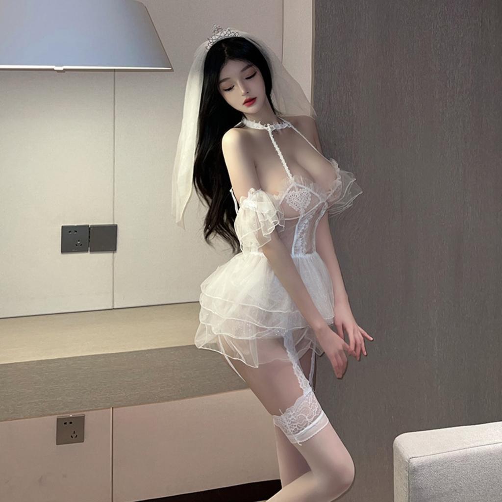 Сексуальная белая прозрачная фата Бесплатный набор свадебного платья Свадебная униформа Искушение