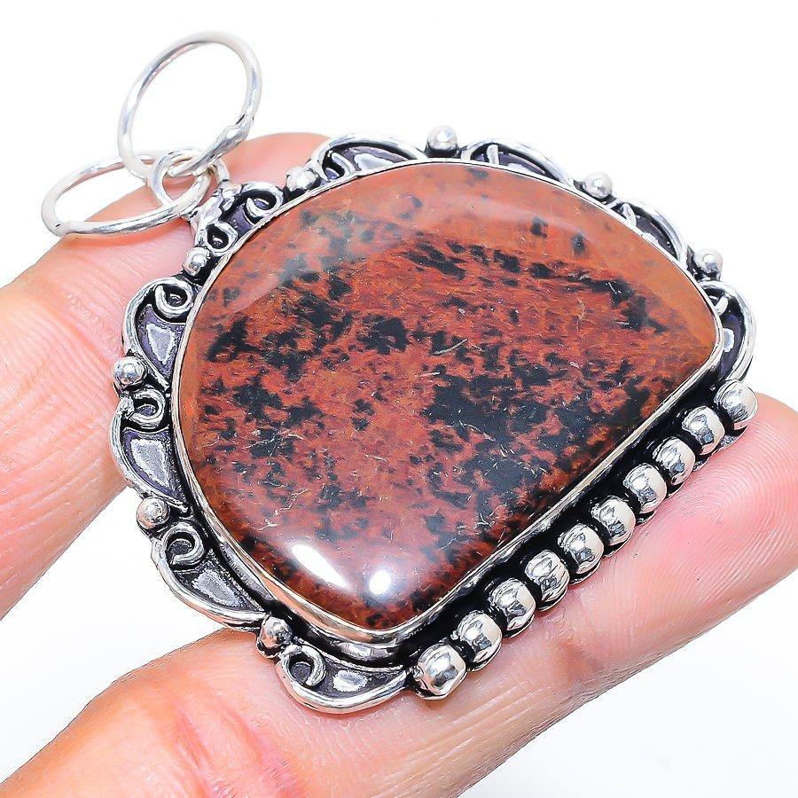 Махагоновый обсидиан Ручная работа Ювелирная подвеска из стерлингового серебра 925 пробы 2,09"