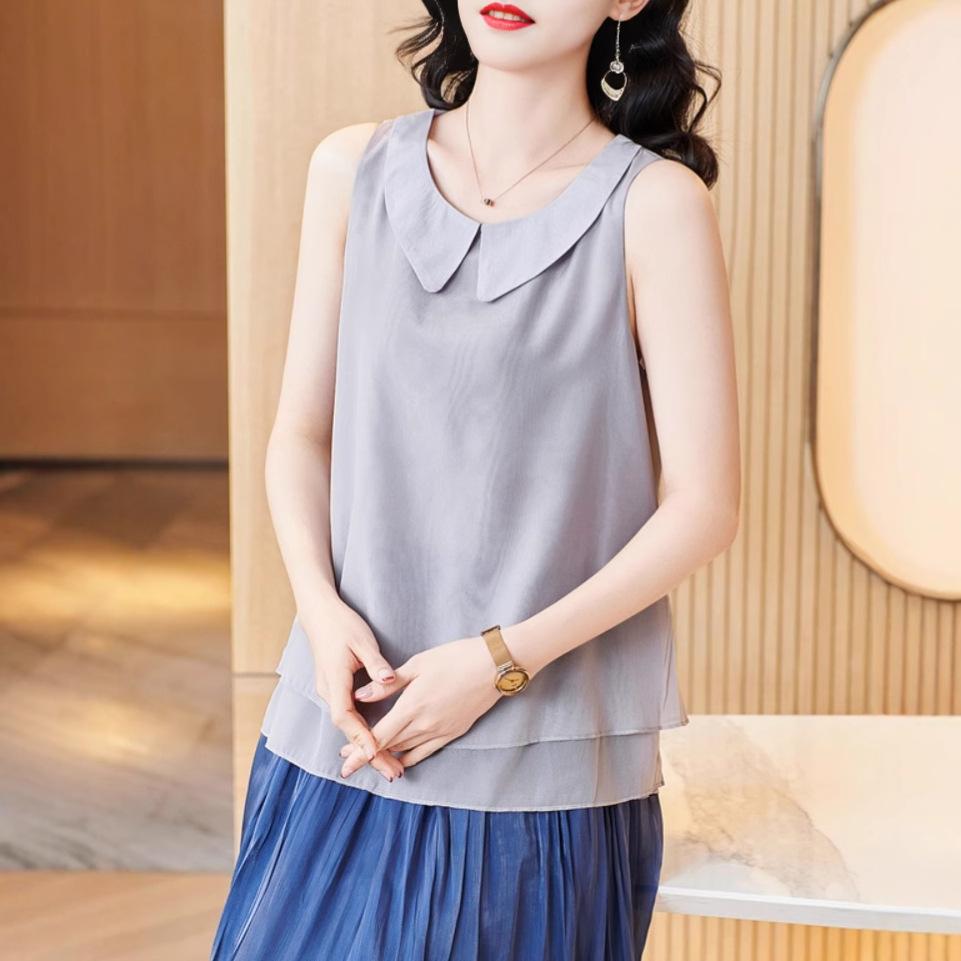 Серый жилет с кукольным воротником и подтяжками для женщин, весенний новый дизайн, свободный шифоновый топ без рукавов