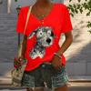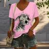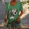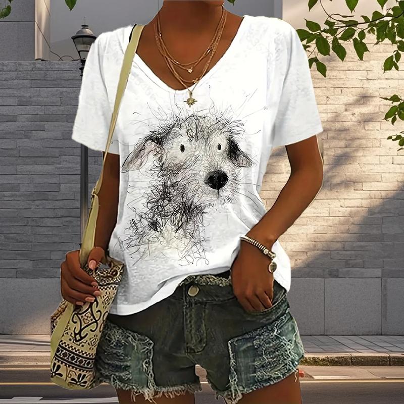 Блузки с рисунком бродячего щенка, футболки с коротким рукавом и V-образным вырезом, повседневные