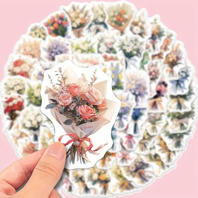 60 шт. наклеек с цветочным букетом - водонепроницаемые виниловые наклейки для ноутбуков, бутылок с водой, матовая отделка, декор в мультяшном стиле с яркими цветочными узорами