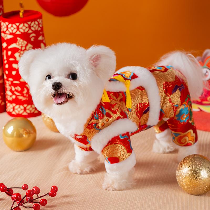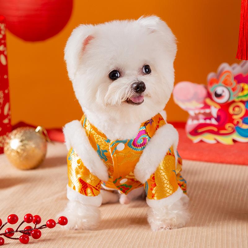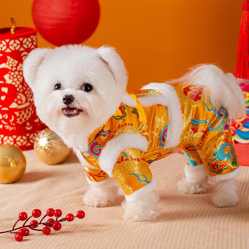 Китайский стиль Собака Осень и зима Благоприятные облака Золотой дракон Новогоднее пальто из хлопка с четырьмя лапами Тан Костюм Кошка Новогодняя плюшевая одежда для домашних животных