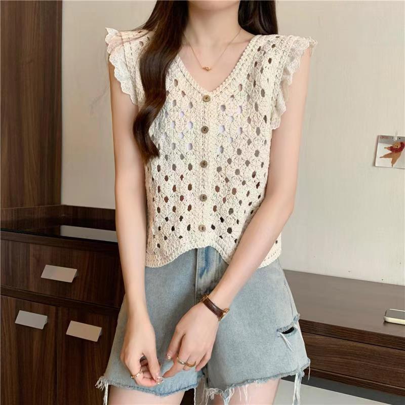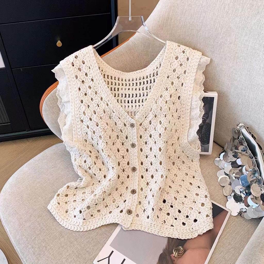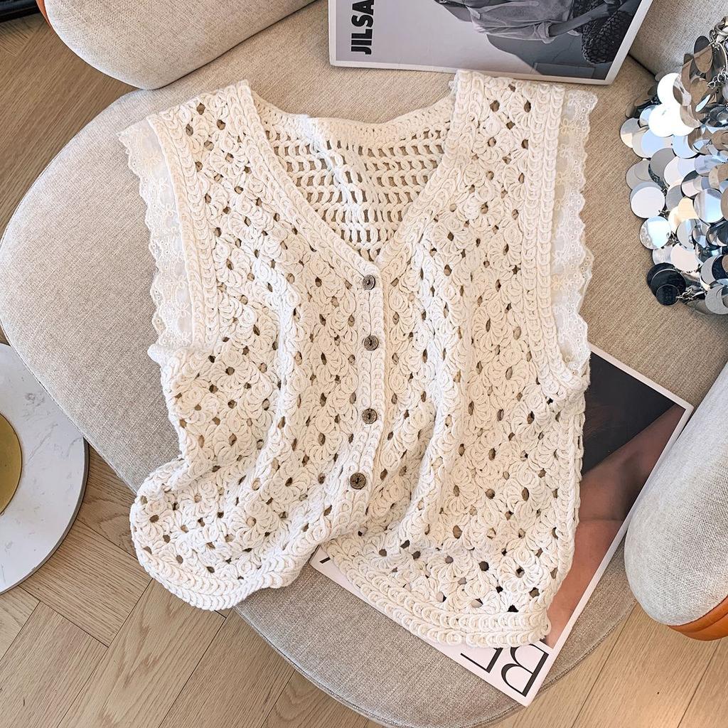 Универсальный вязаный крючком жилет для женщин с V-образным вырезом, короткий жилет-топ Sweet Niche на лето