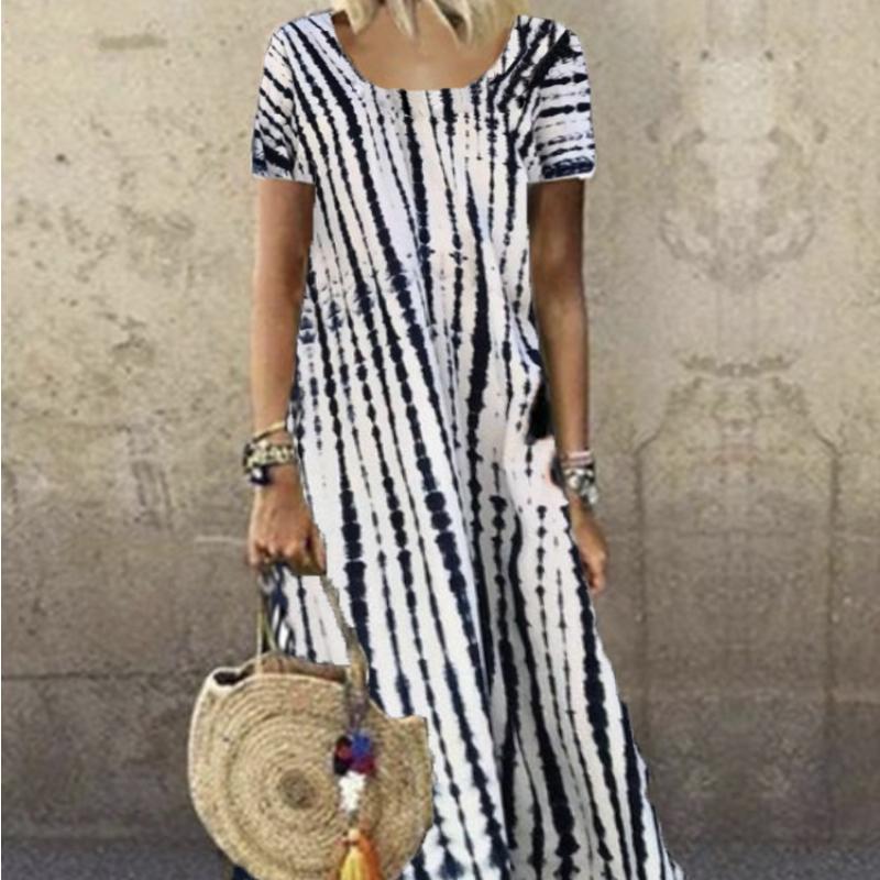 Женское повседневное повседневное богемное платье макси с коротким рукавом и принтом больших размеров