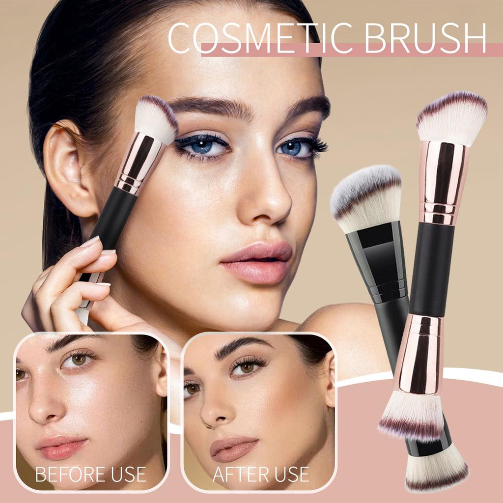 Двусторонняя кисть для нанесения тональной основы и консилера, односторонняя скошенная кисть для нанесения пудры, портативная кисть для макияжа.