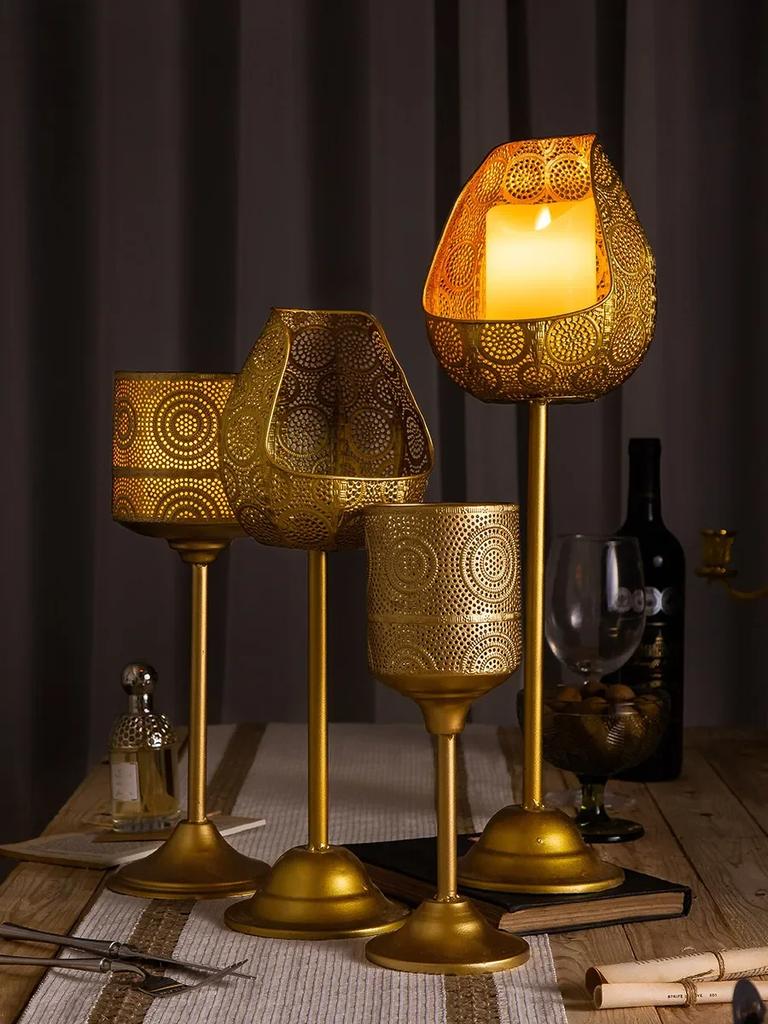 1 шт. Европейский стиль металлический подсвечник ювелирные изделия ручной работы полый узорчатый золотой подсвечник подсвечник для ужина