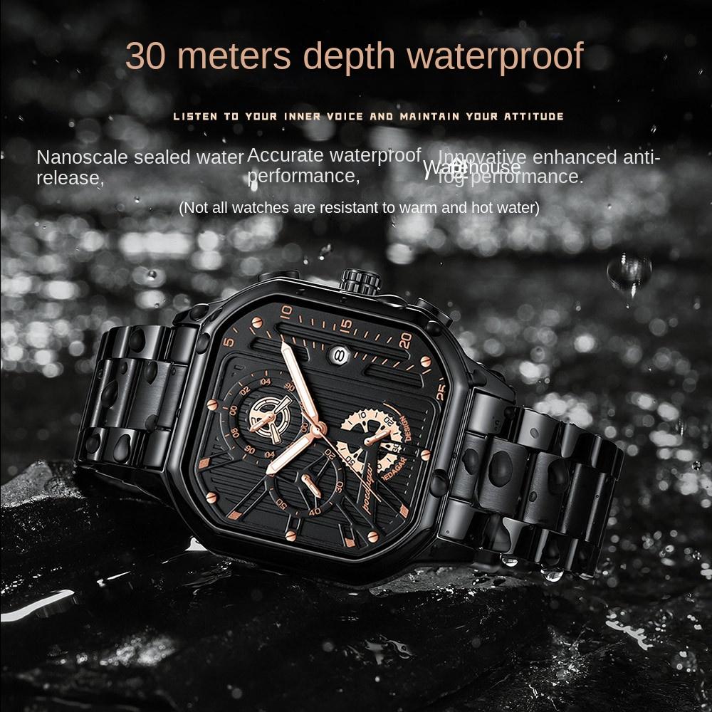 Роскошные квадратные спортивные мужские наручные часы водонепроницаемые светящиеся кварцевые мужские часы из нержавеющей стали мужские часы