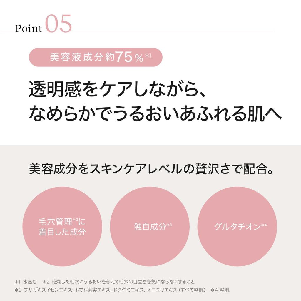 Сохраняя влажную и увлажненную текстуру, средство обладает улучшенной защитой от ультрафиолета и SPF50+/PA++++.. Независимо от сезона, это средство можно использовать как самостоятельное средство или в качестве основы под тональный крем.