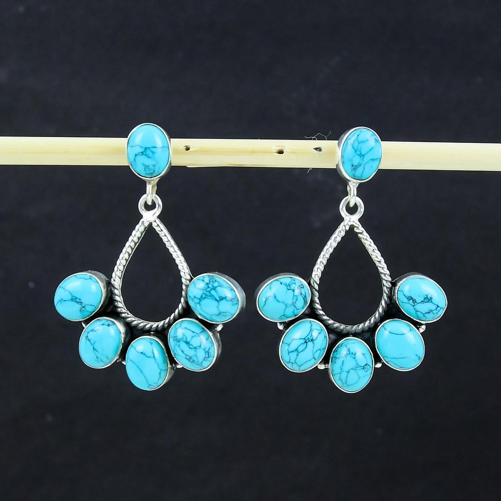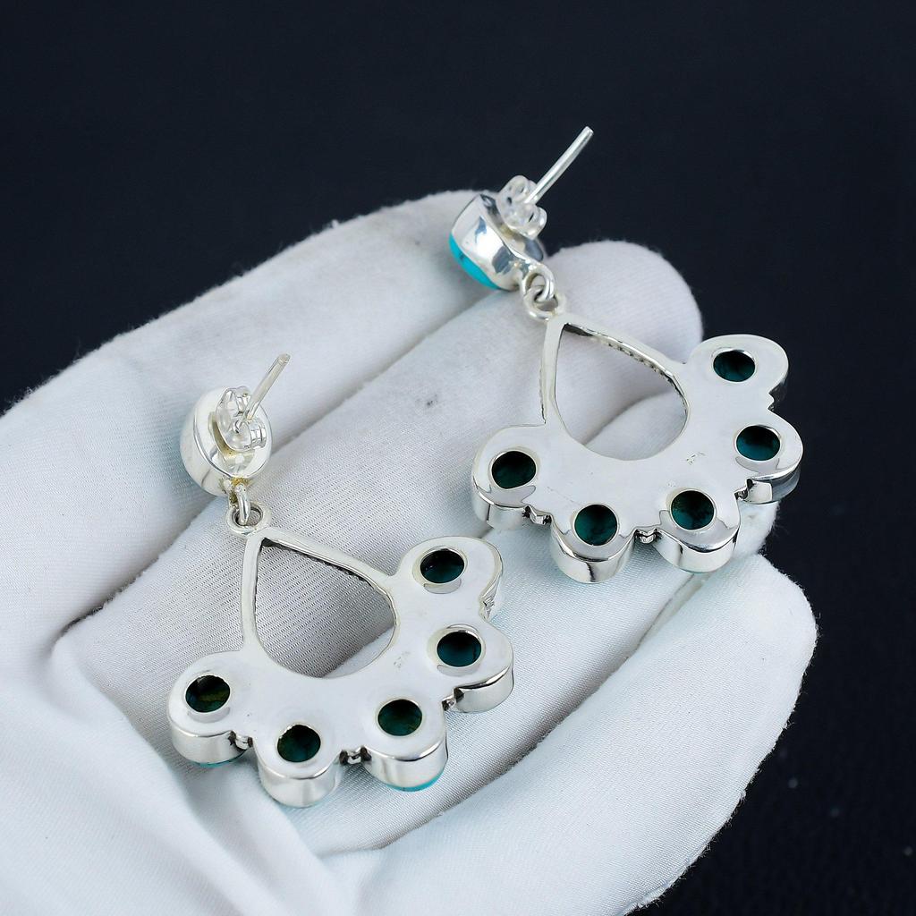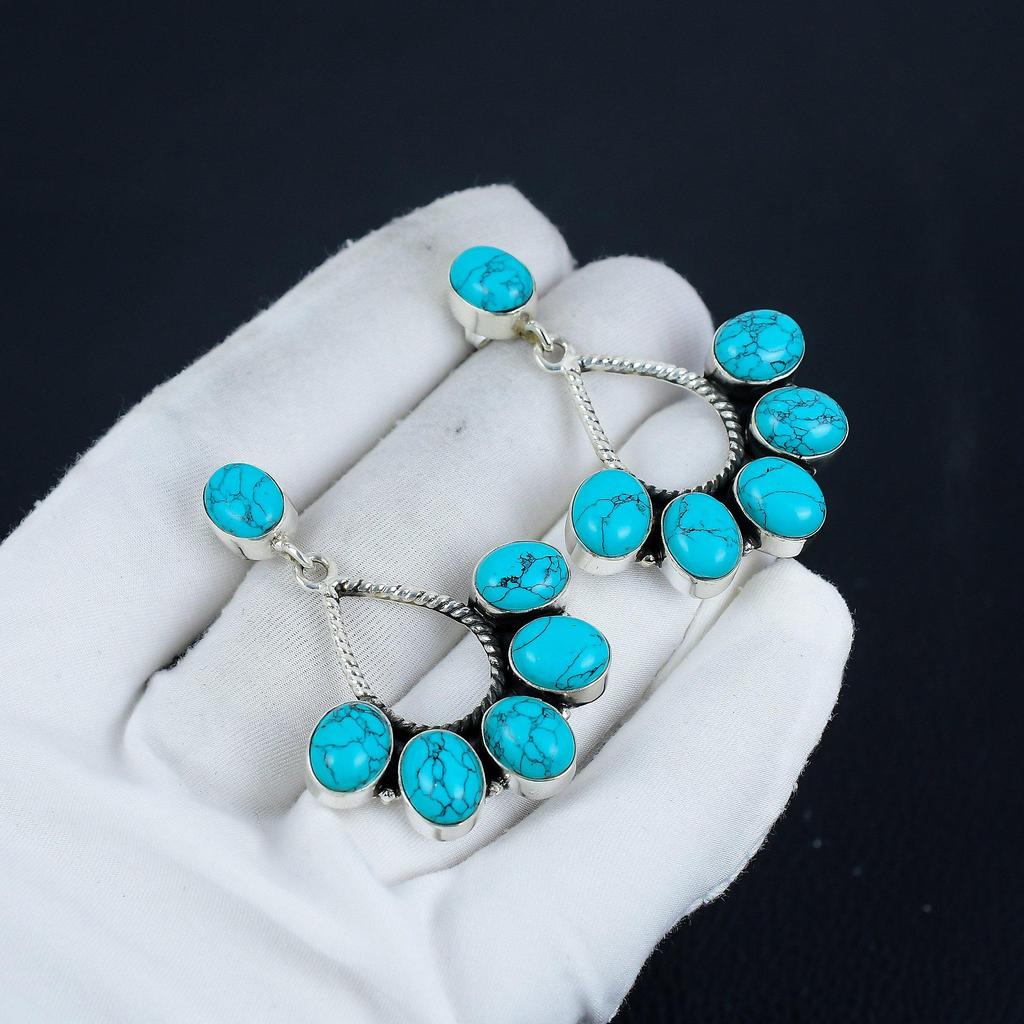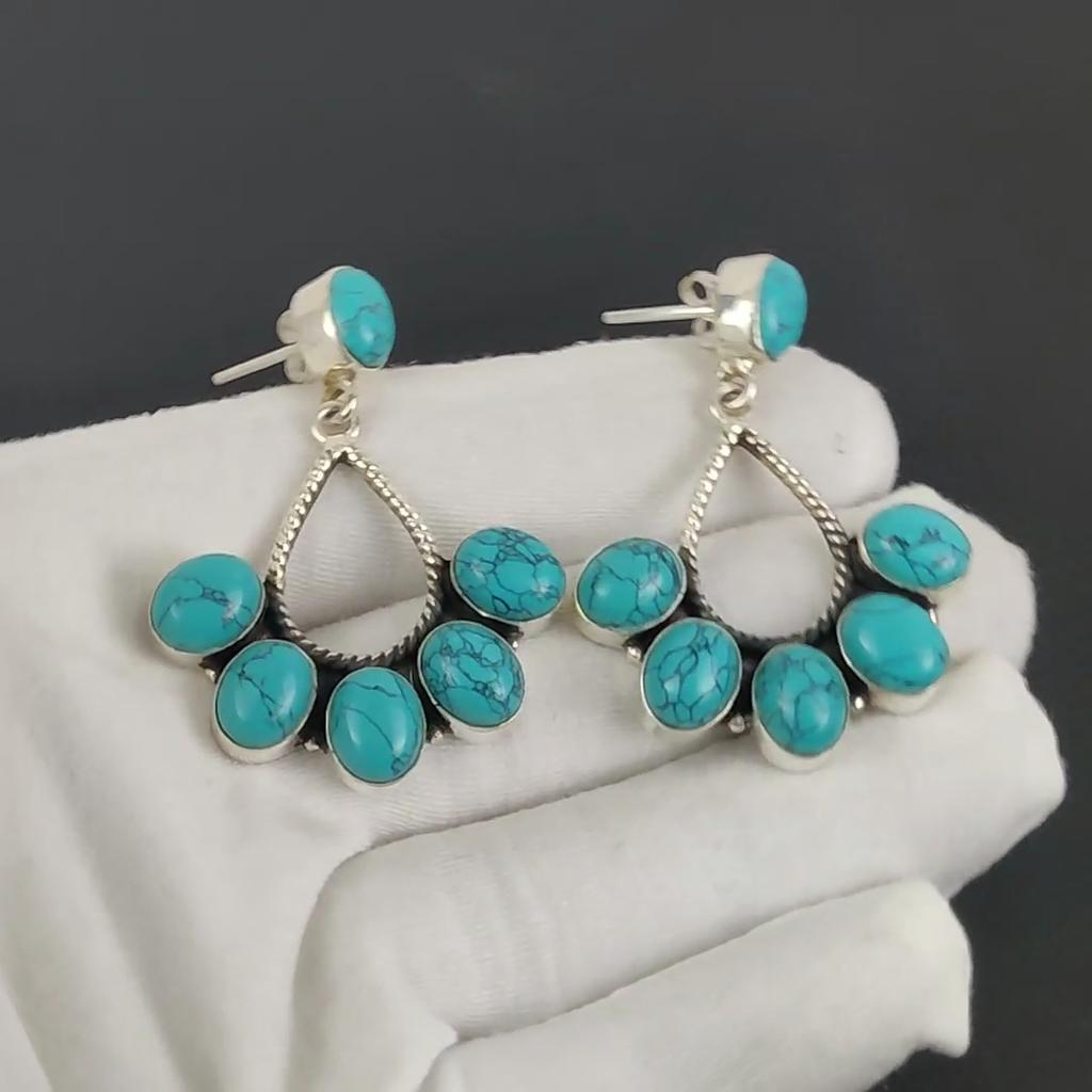 Серьги с натуральными бирюзовыми камнями, серьги из стерлингового серебра 925 пробы, серьги-подвески из серебра ручной работы в стиле бохо, подарок на день рождения