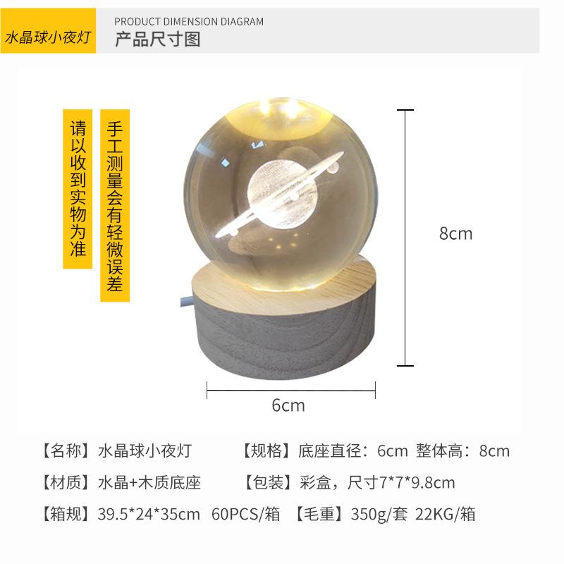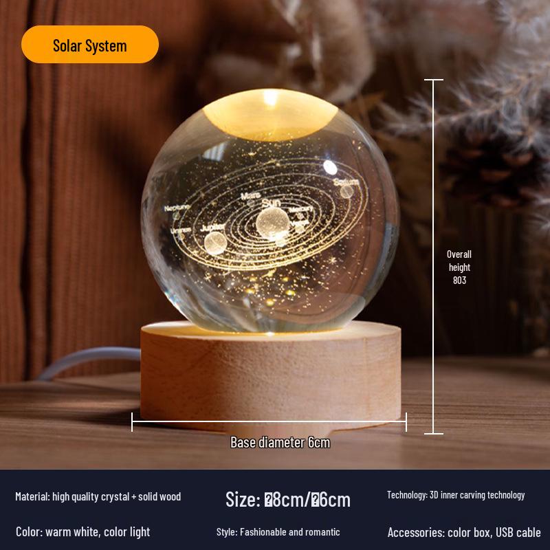 Светящийся хрустальный шар-ночник - креативное украшение для рабочего стола и праздничный подарок