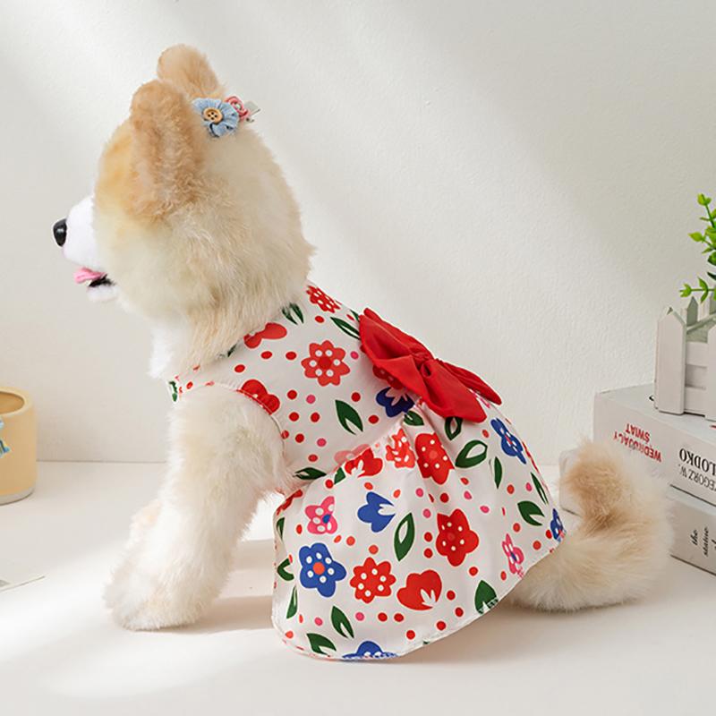 Летнее платье для собак и кошек, легкое, дышащее, милое, в мультяшном стиле, одежда для маленьких домашних животных, щенков и котят, разноцветные платья с цветочным принтом