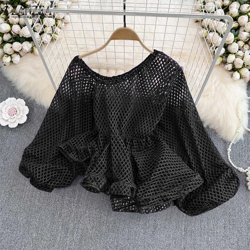 ZANZEA Женские элегантные блузки с открытыми плечами и длинным рукавом с открытой талией