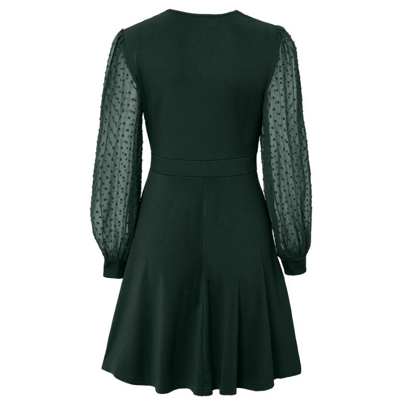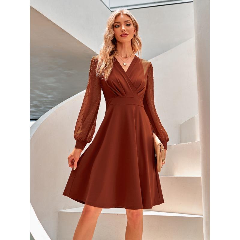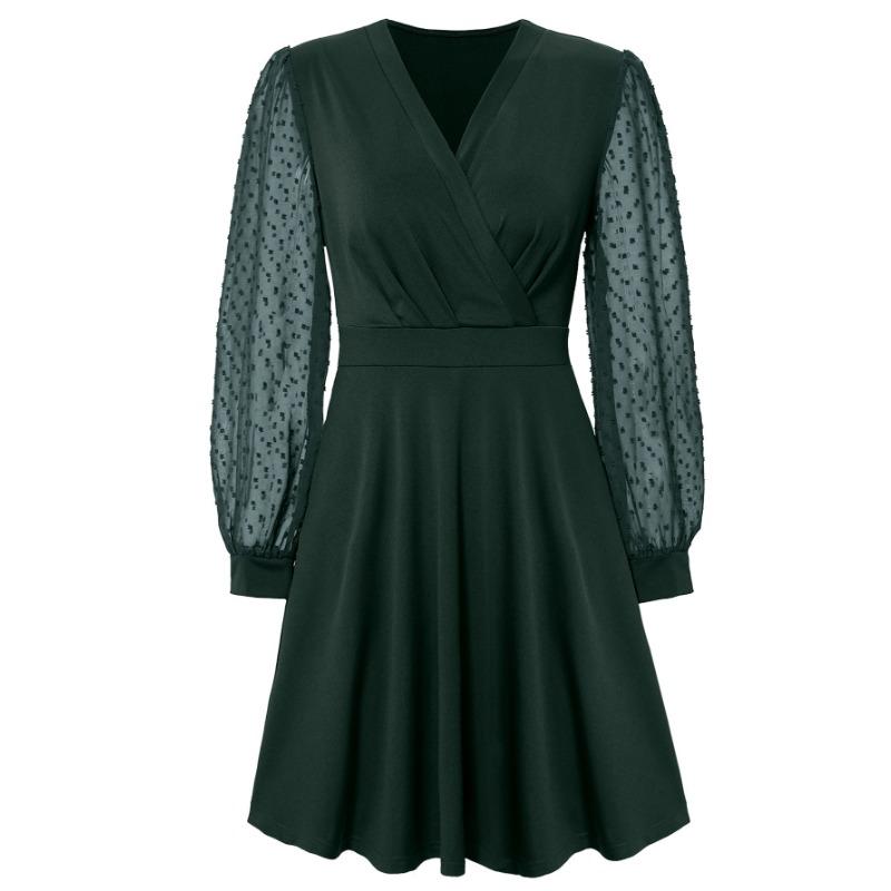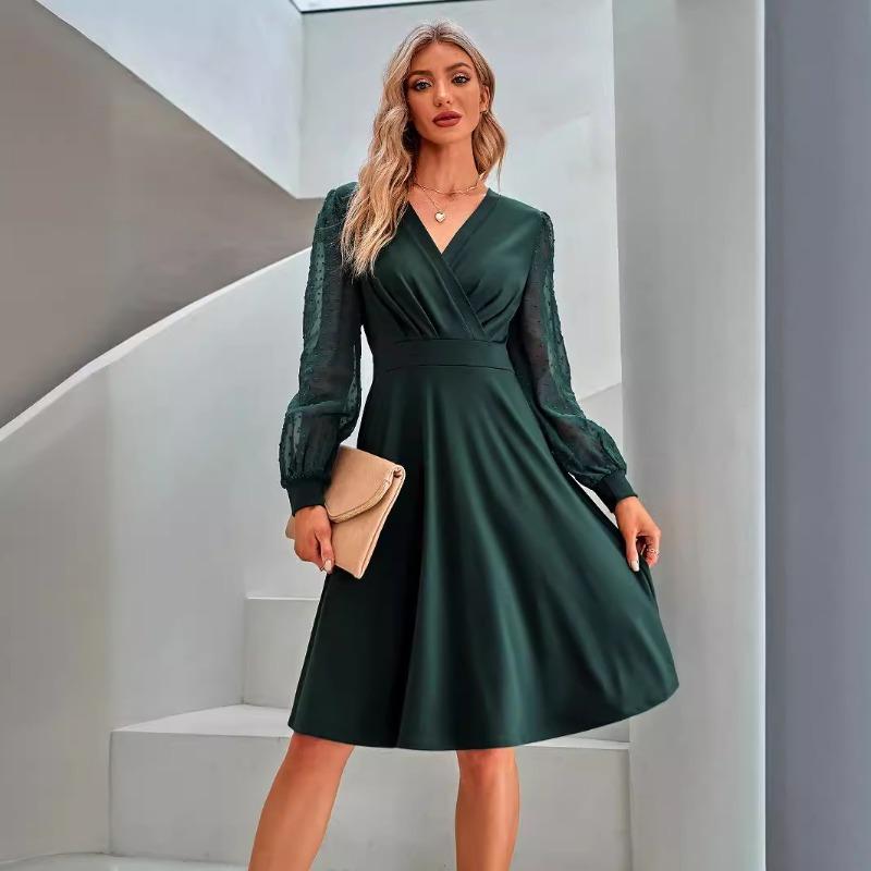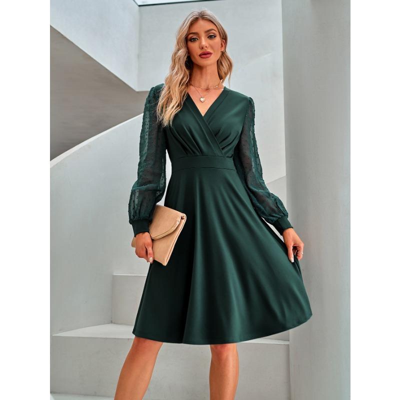 Женское летнее трендовое платье с V-образным вырезом, жаккардовым узором и длинными рукавами