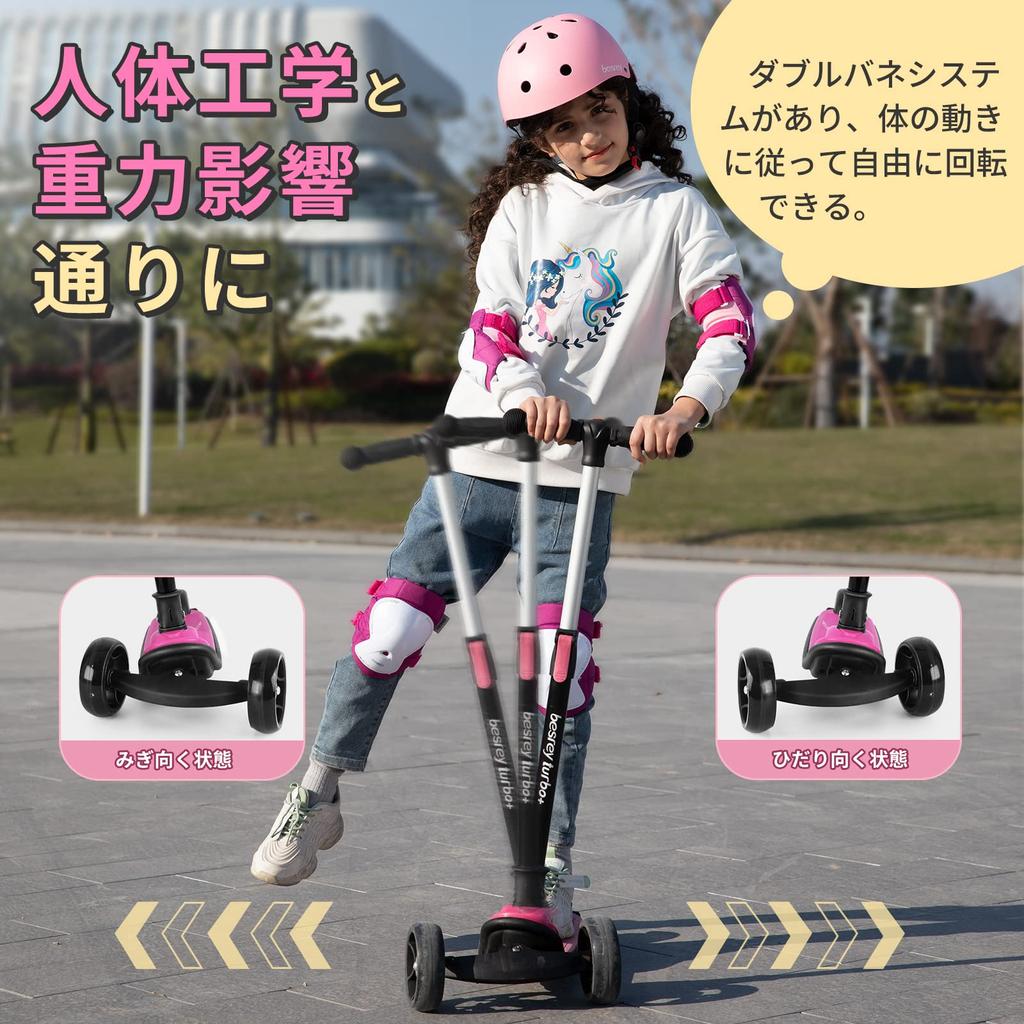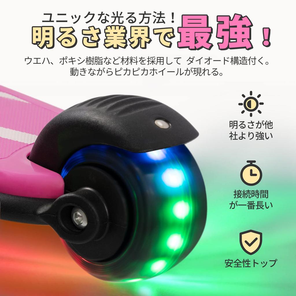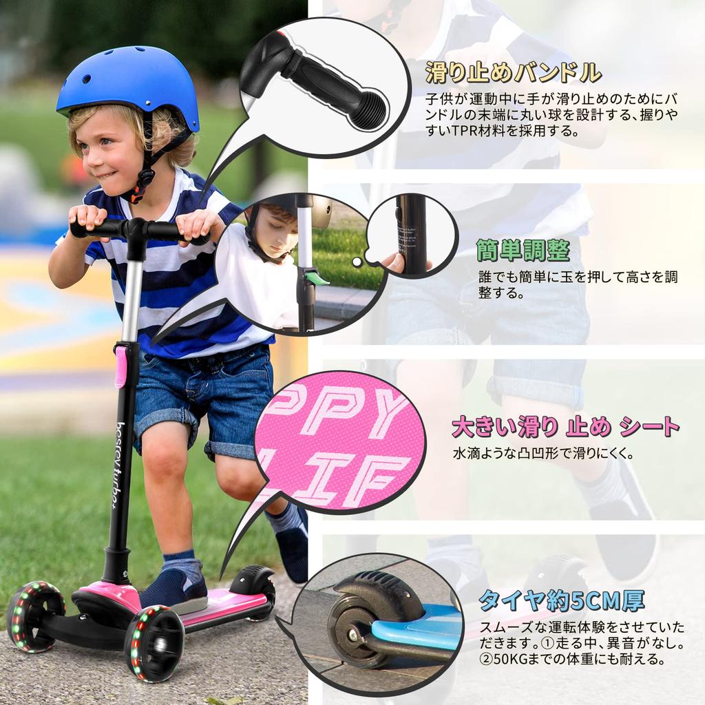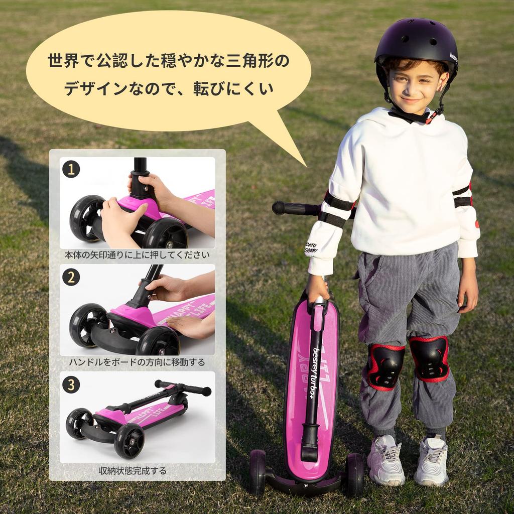 Besrey Кикборд Кик для Детей 3 Колеса 3 Уровня Направление Высота Заднего Колеса Подсветка LED Легко на День Рождения Розовый Самокат, Детский, Самокат, Трехколесный,