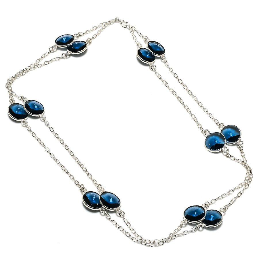 Лондонский голубой топаз Ручная работа 925 стерлинговое серебро Подарок Ювелирное изделие Ожерелье 36" d4i44