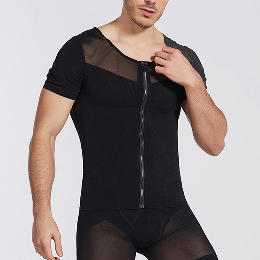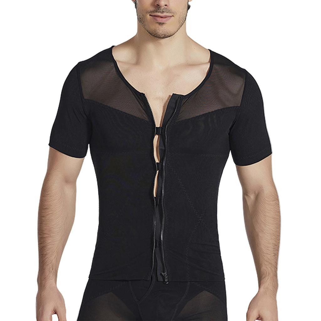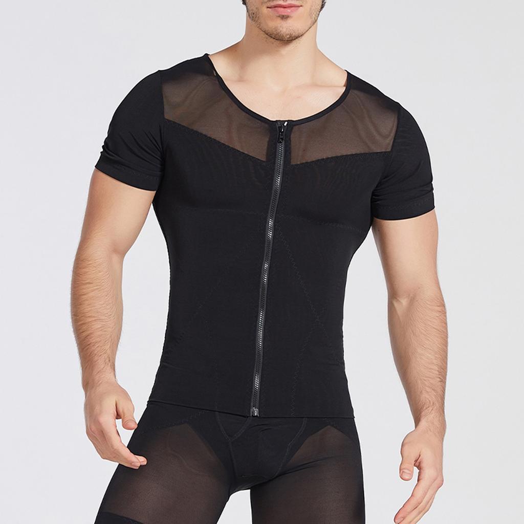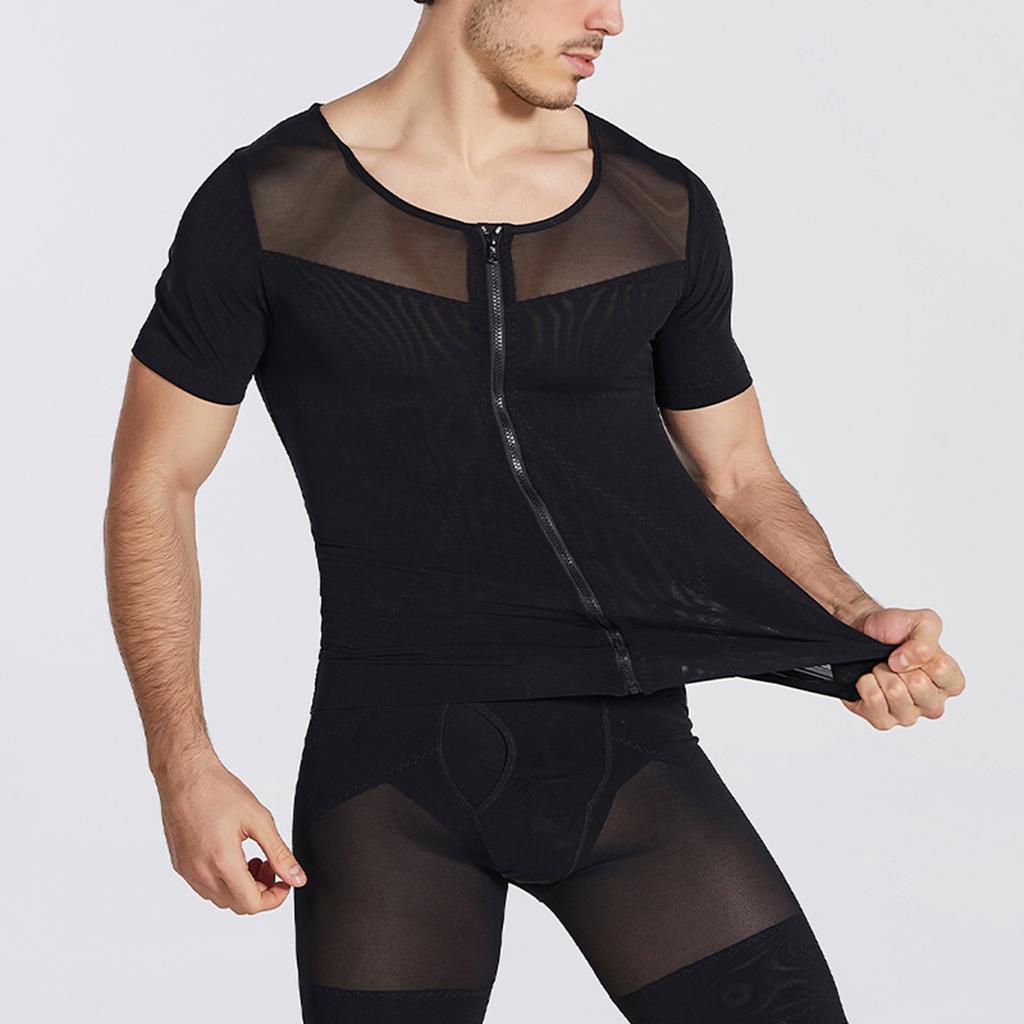 Мужская дышащая молния с высокой эластичностью, обтягивающая талию и живот, корректирующая короткие рукава