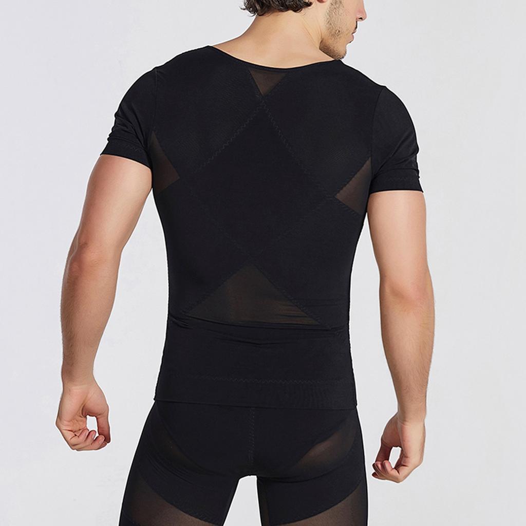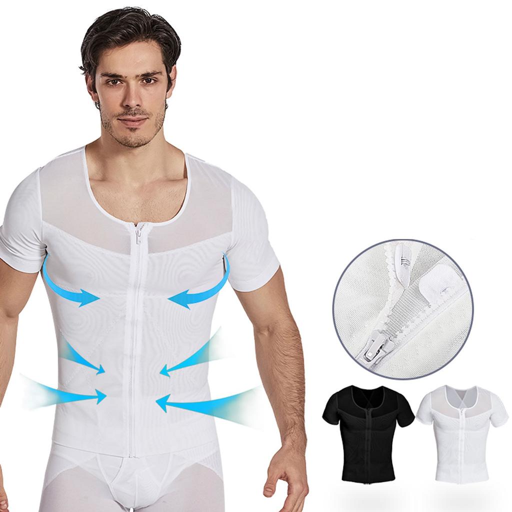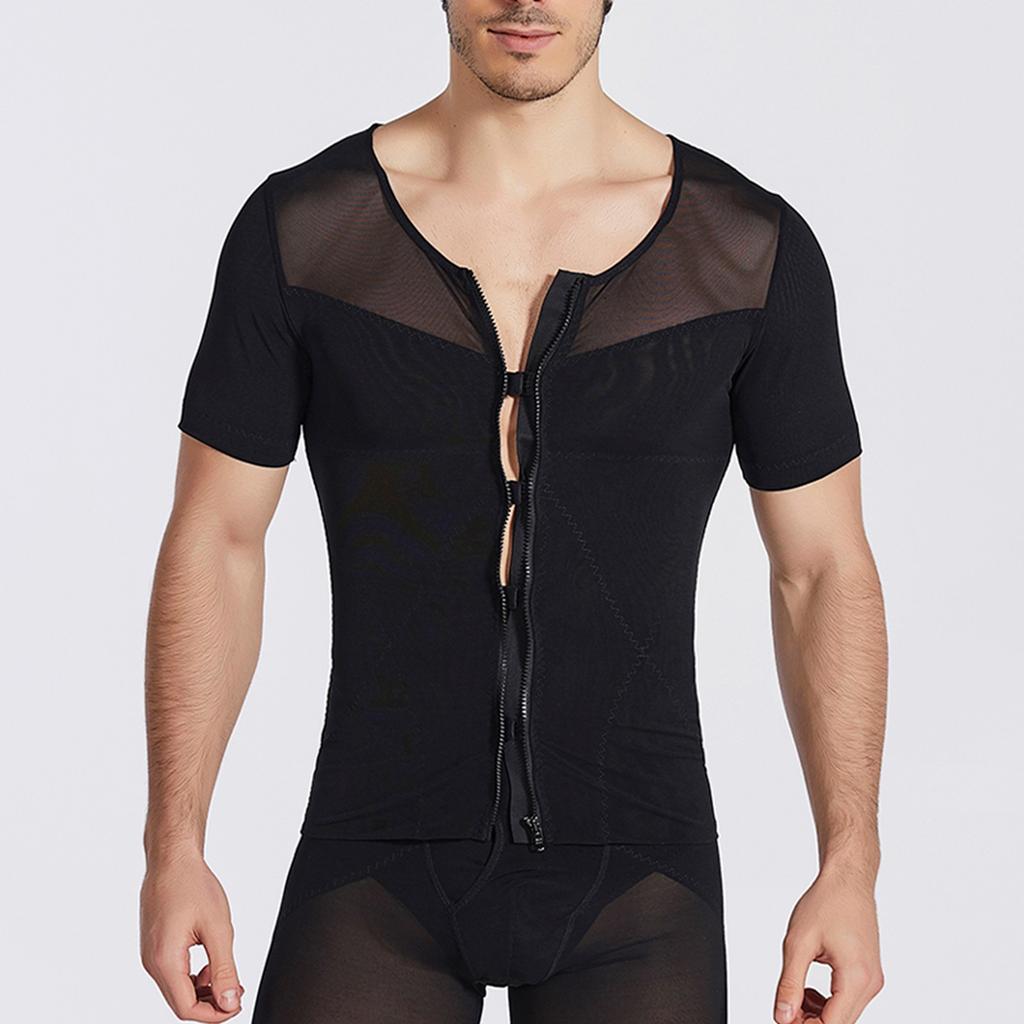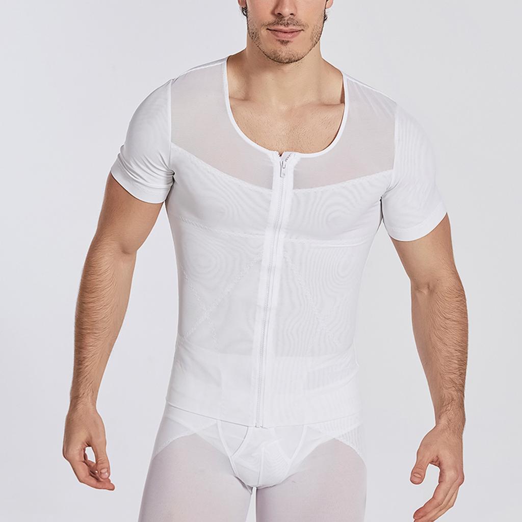 Мужская дышащая молния с высокой эластичностью, обтягивающая талию и живот, корректирующая короткие рукава
