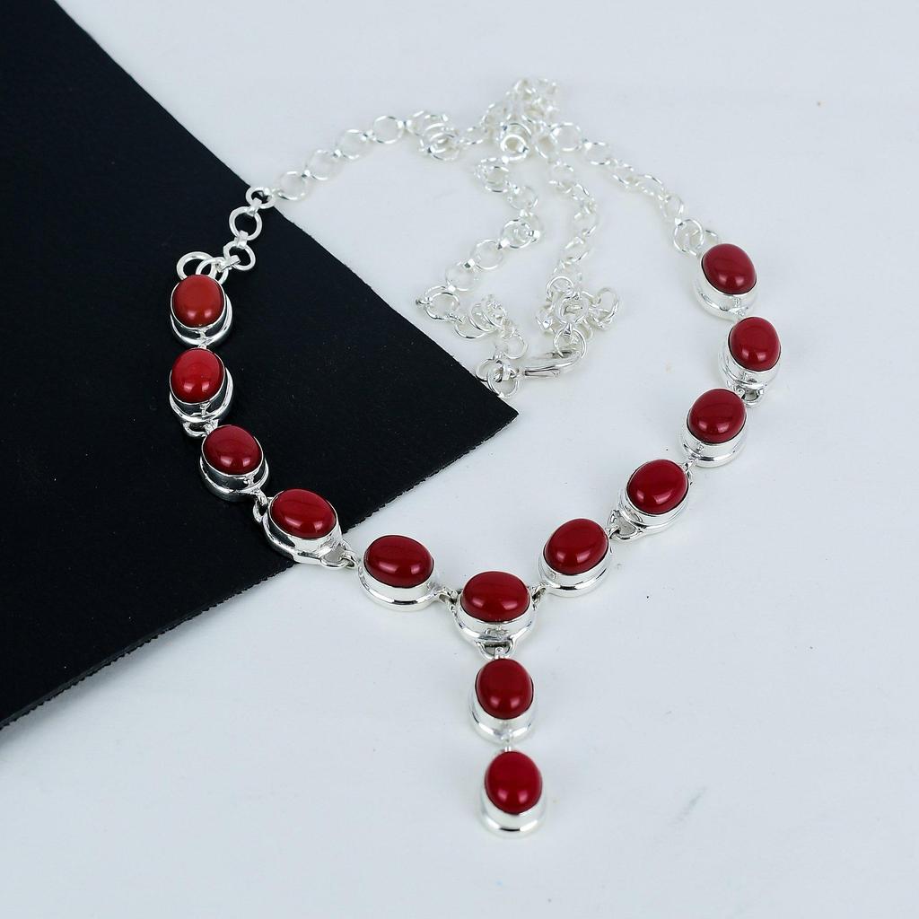 Ожерелье из натурального красного коралла ручной работы из стерлингового серебра 925 пробы, серебряное ожерелье из красного коралла для жены, ожерелье унисекс, подарок на любовь