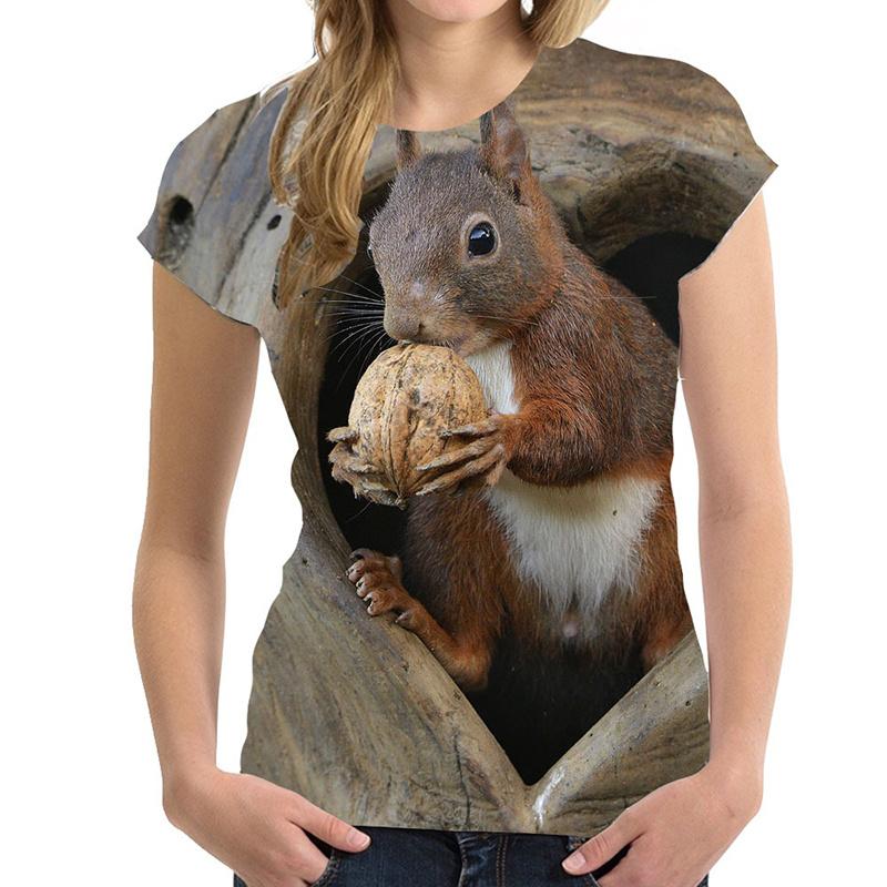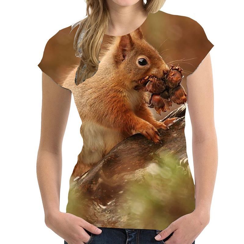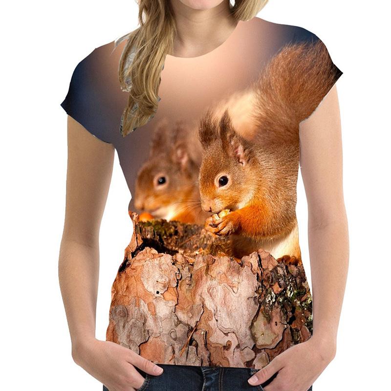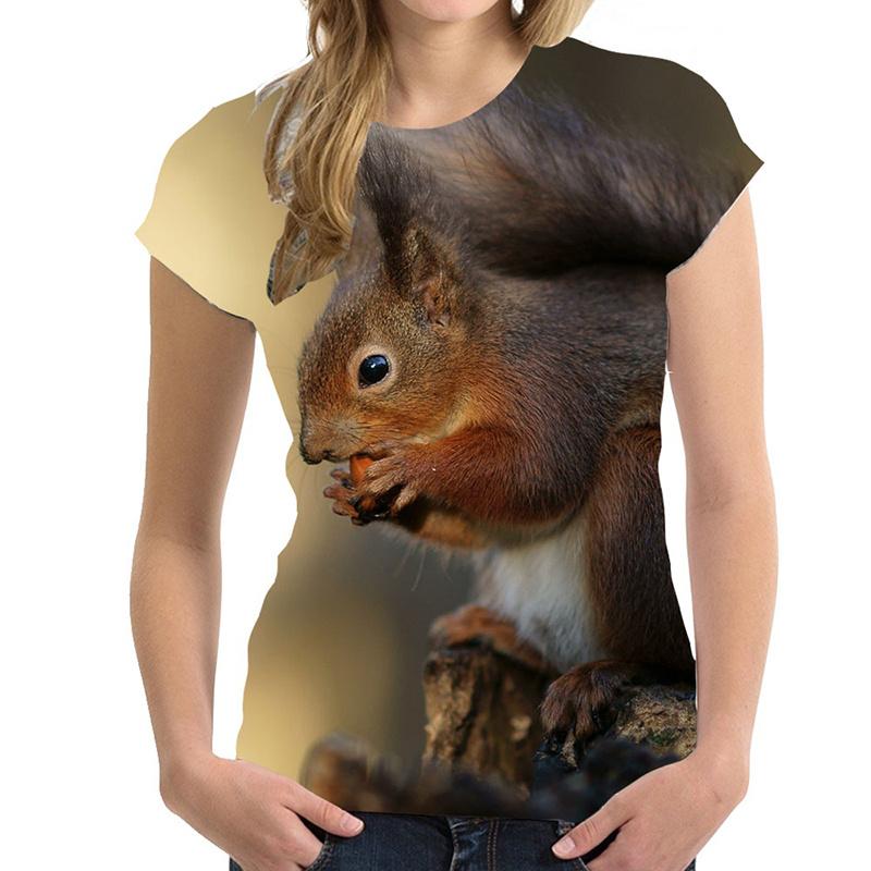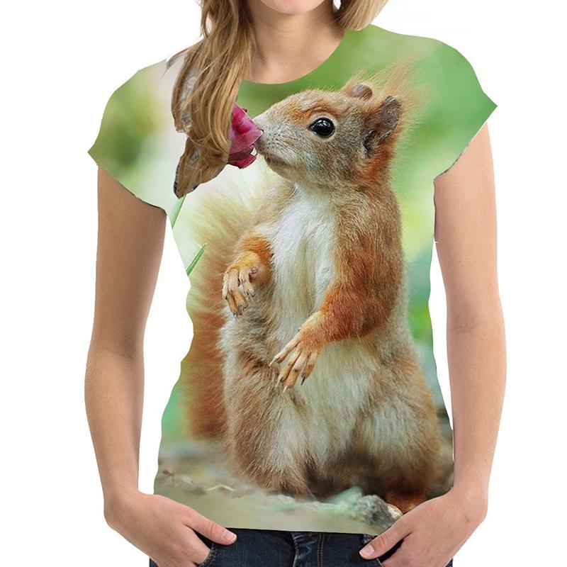 Летний топ с круглым вырезом и принтом в виде белки, модные повседневные милые женские футболки с короткими рукавами