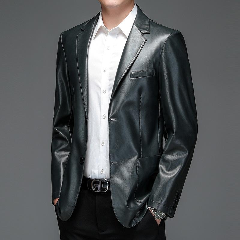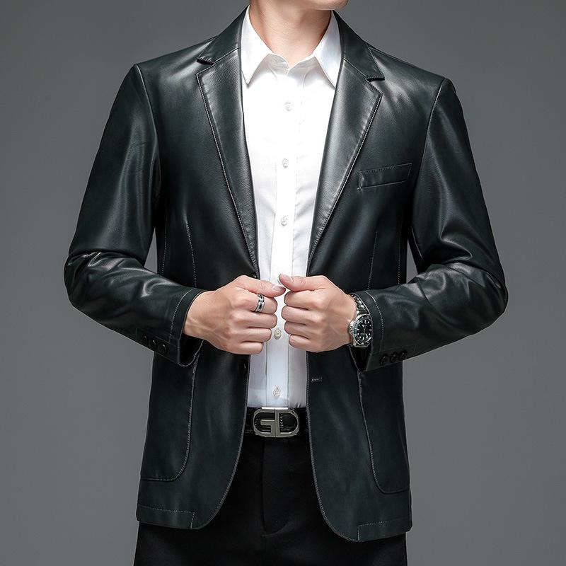 Весенне-осенний костюм из натуральной кожи, мужской костюм из овчины, приталенная кожаная куртка, короткий кожаный костюм, пальто
