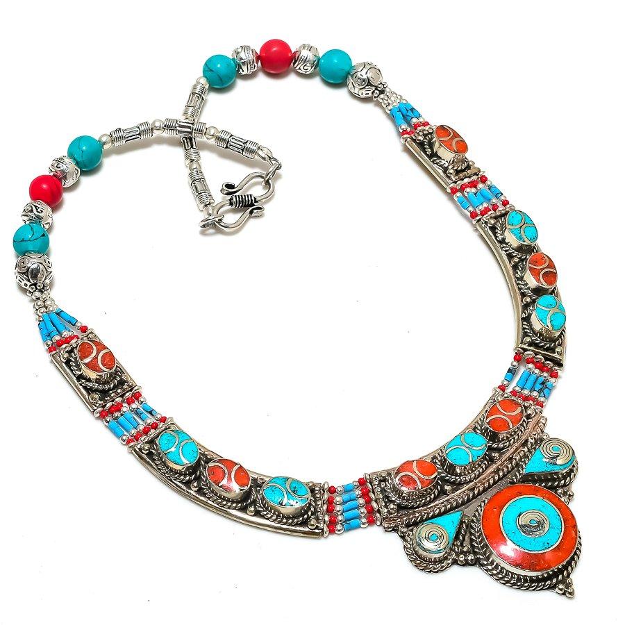 Тибетская бирюза, коралловое ювелирное ожерелье ручной работы 18 дюймов N1n26 — купить товар онлайн с бесплатной доставкой до всему миру!