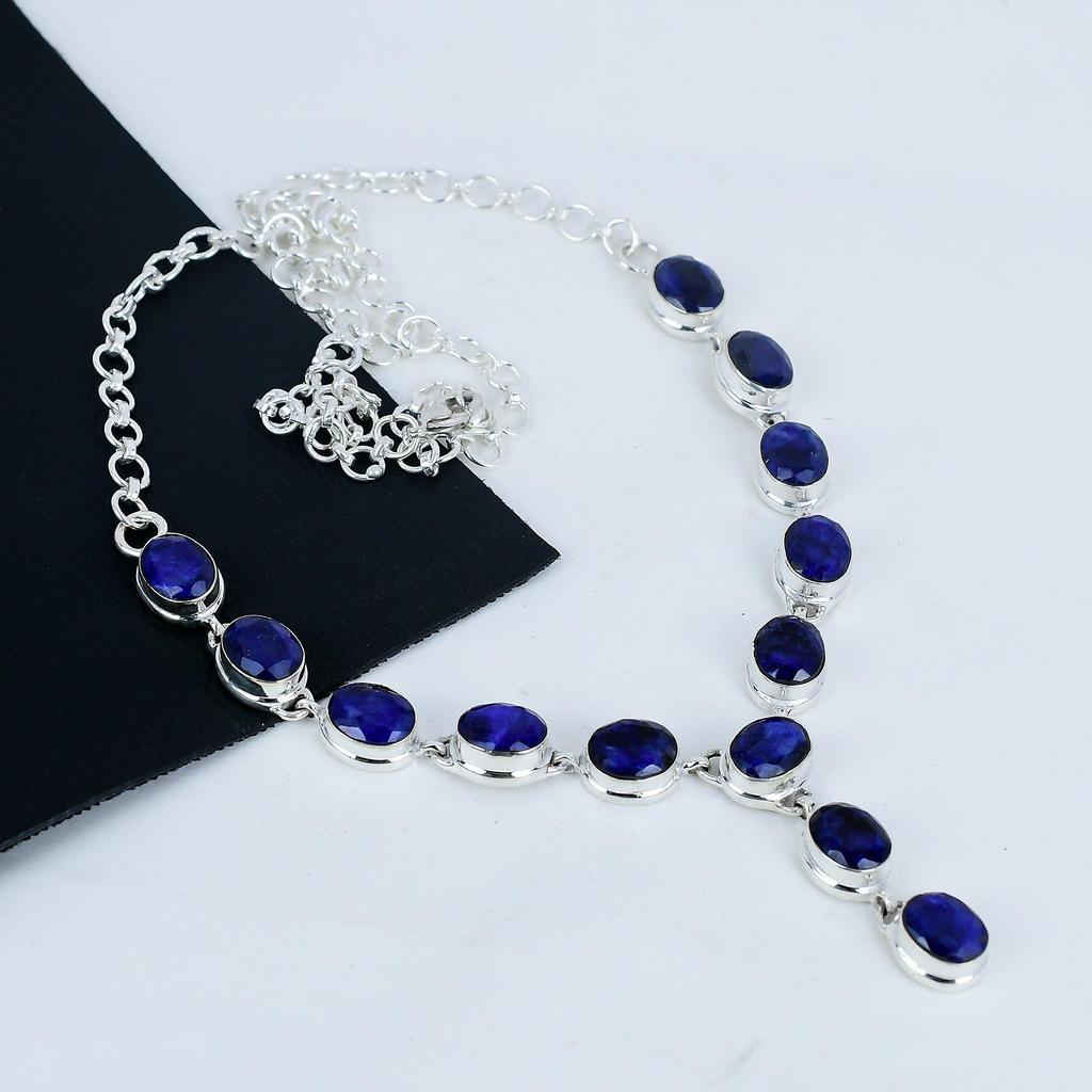 Красивое колье из серебра 925 пробы с синим сапфиром, серебряное колье с синим лабрадоритом для жены, унисекс, подарок — купить товар онлайн с бесплатной доставкой по всему миру!