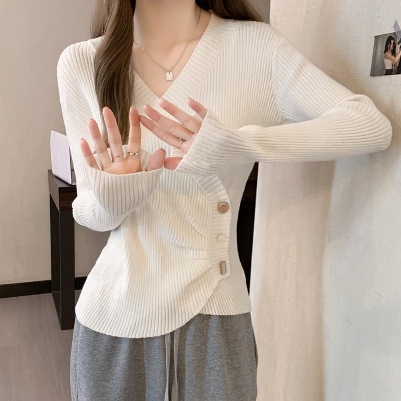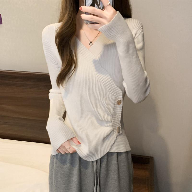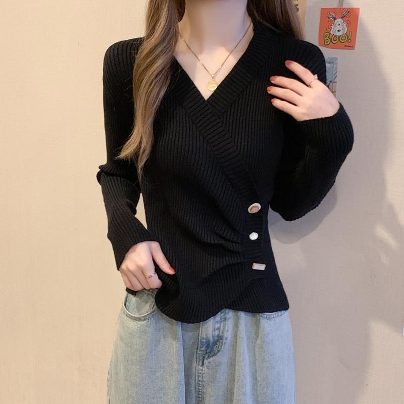Корейский стиль, дизайн, длинный рукав, базовый вязаный свитер, весенний, большой размер, для полных, мм, утягивающий, нерегулярный топ, нижнее белье, свитер, модный