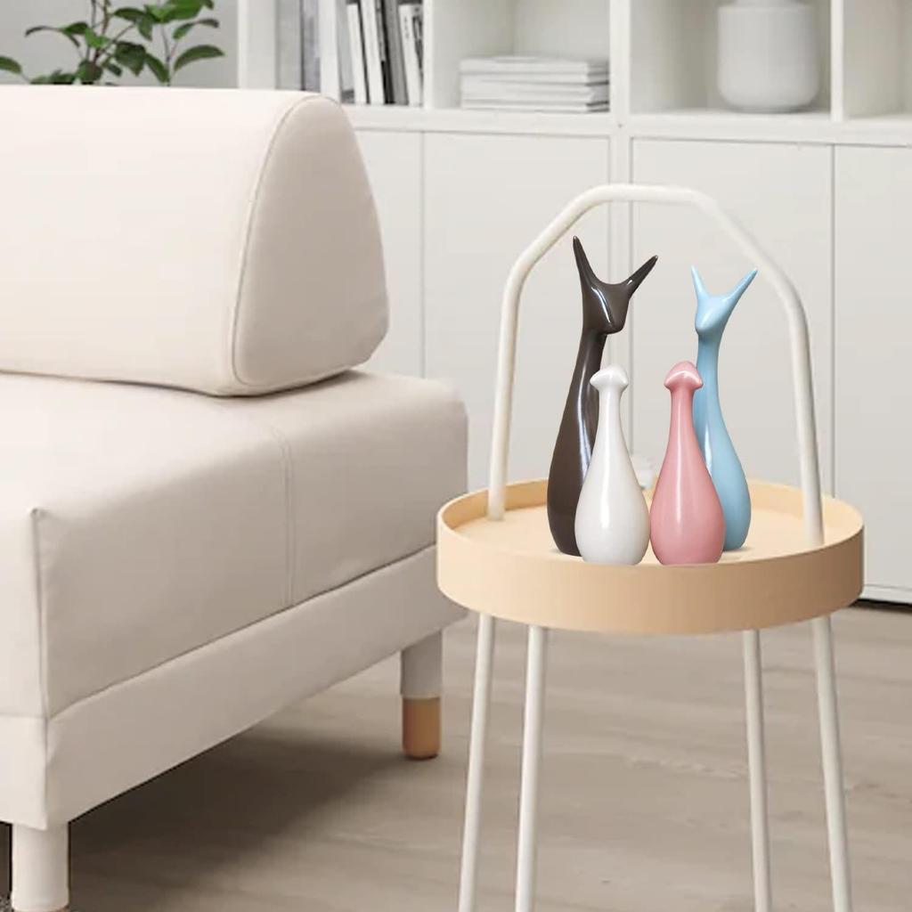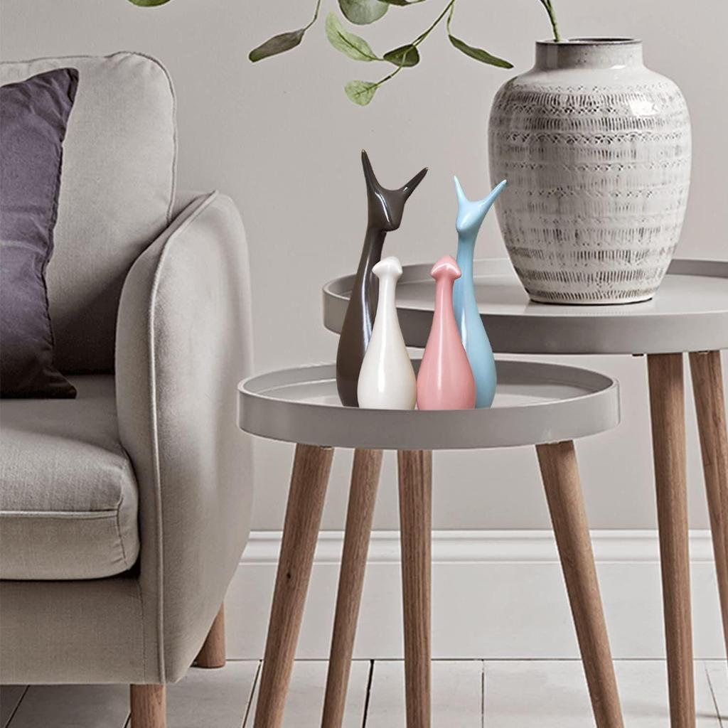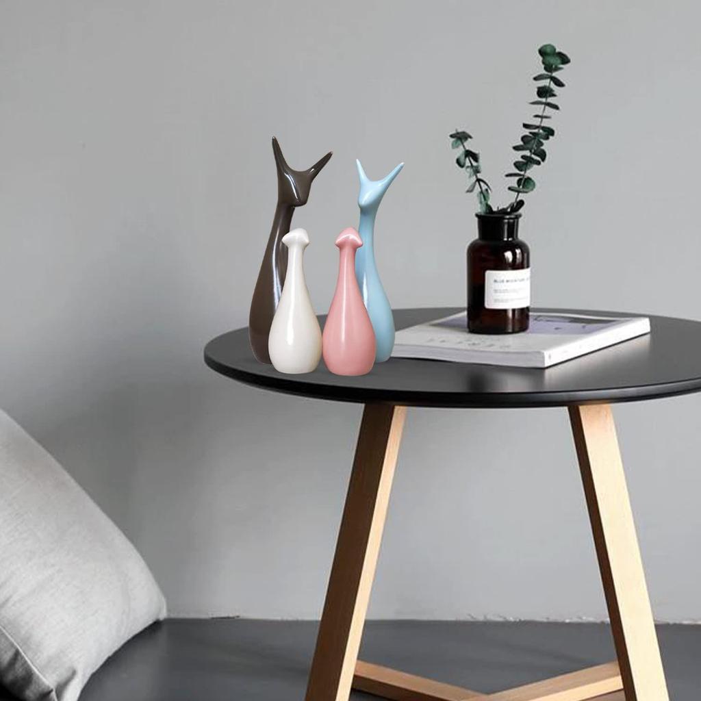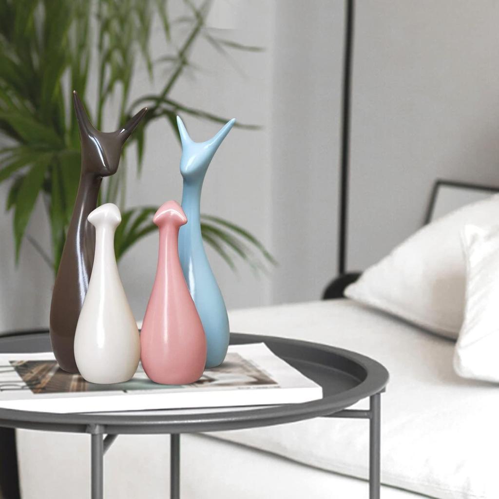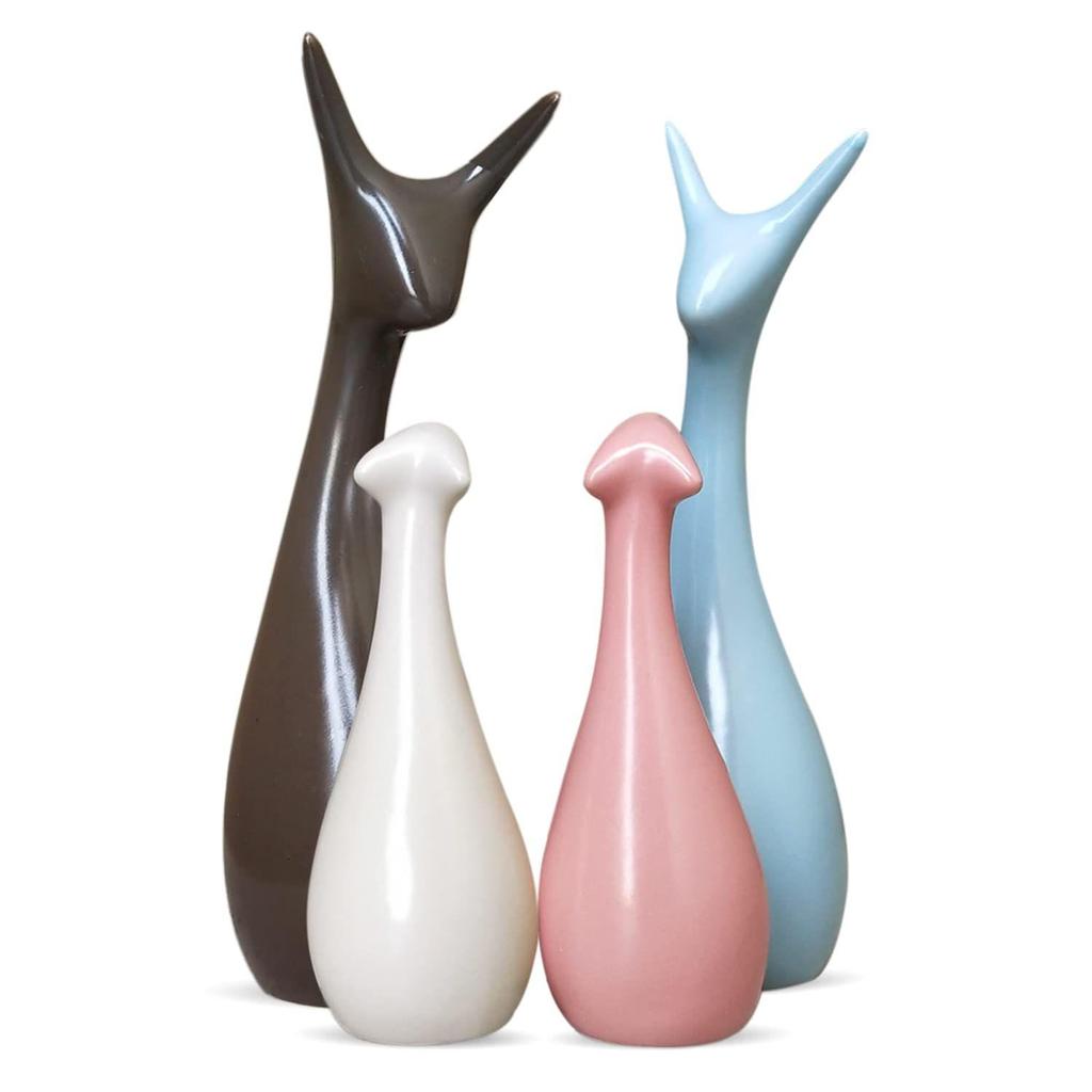 Керамические фигурки Lucky Deer Family с матовой отделкой для домашнего декора- (Набор из 4 шт., Небесный, Коричневый, Розовый, Кремовый)