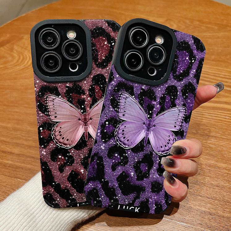 Чехол из кожи с вертикальным зернистым узором и принтом в виде бабочек, противоударный, мягкий силиконовый, с полной защитой объектива камеры для iPhone