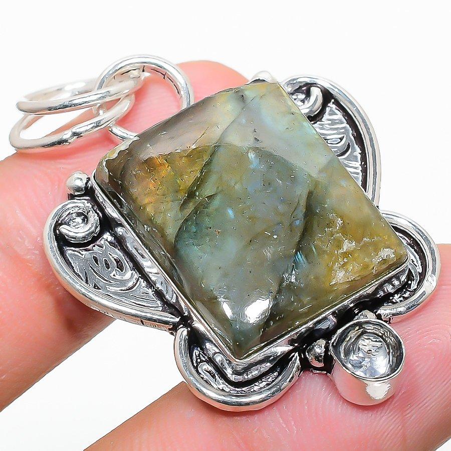 Лабрадорит, Белый Топаз Ювелирная Подвеска из Стерлингового Серебра 925 пробы 1,85"